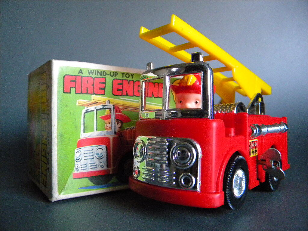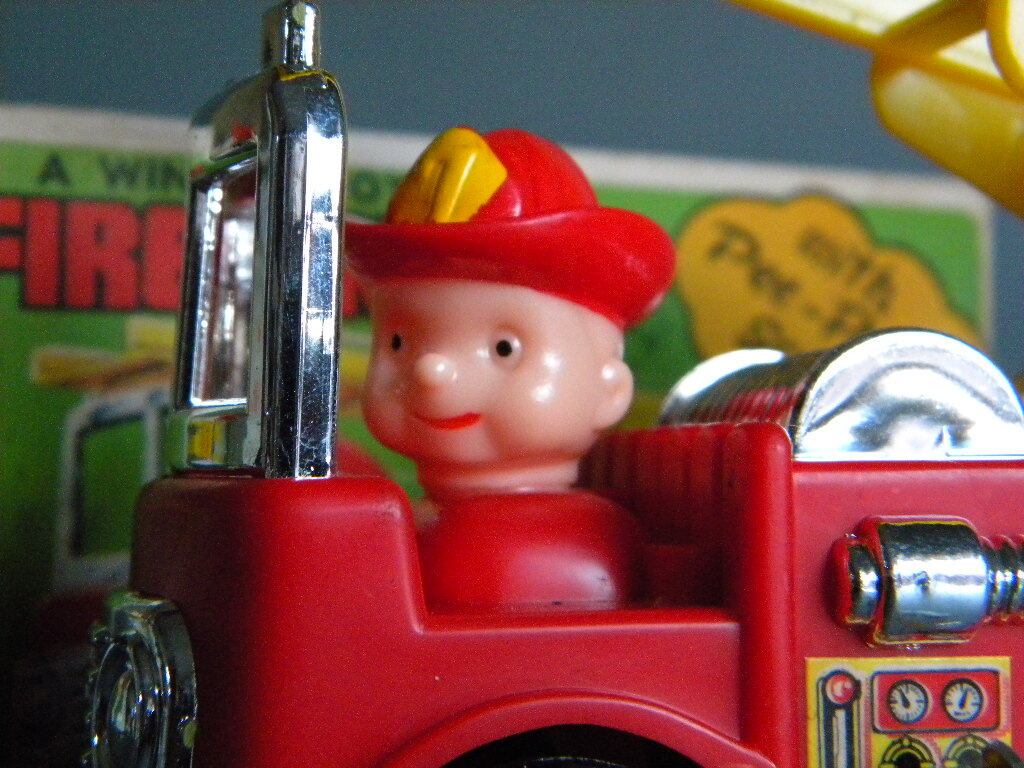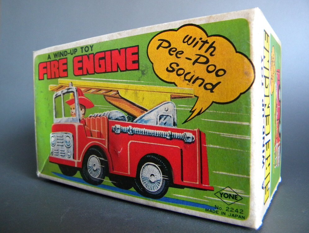 当時物 ★★pee-poo sound FIRE ENGINE 消防車 ソフビ坊や 消防士 作動良好 !! サイレン音出走行 YONE日本製 旧車★★未使用デッドストック