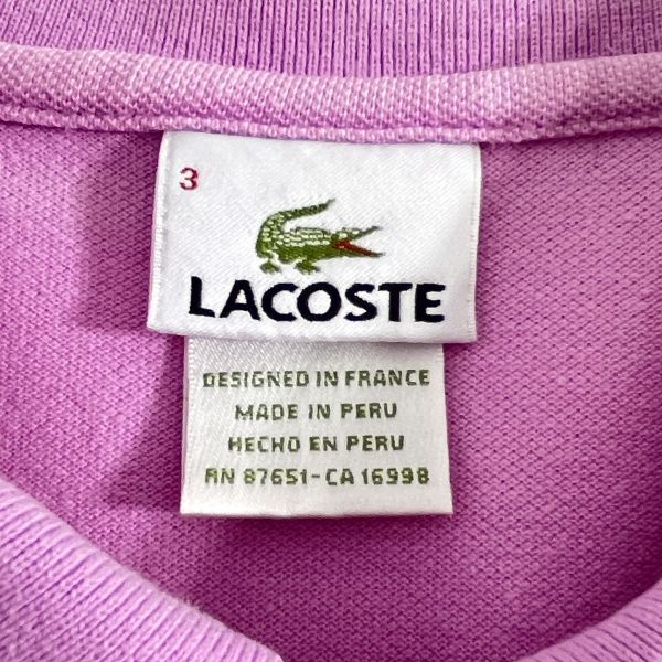 LACOSTE ラコステ 半袖ポロシャツ ピンク サイズ3 ペルー製 フェード感