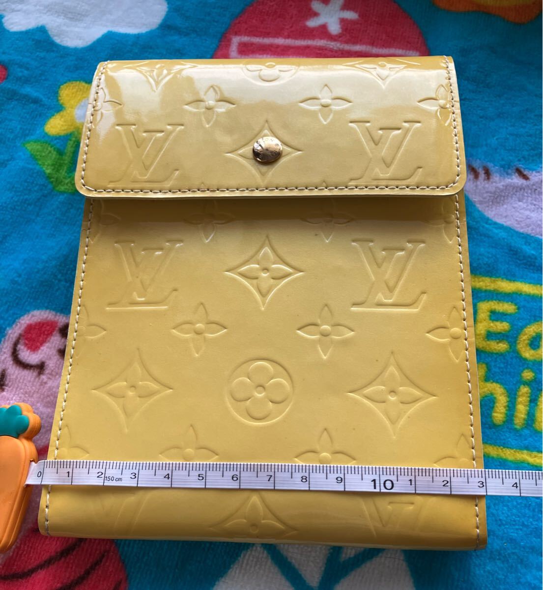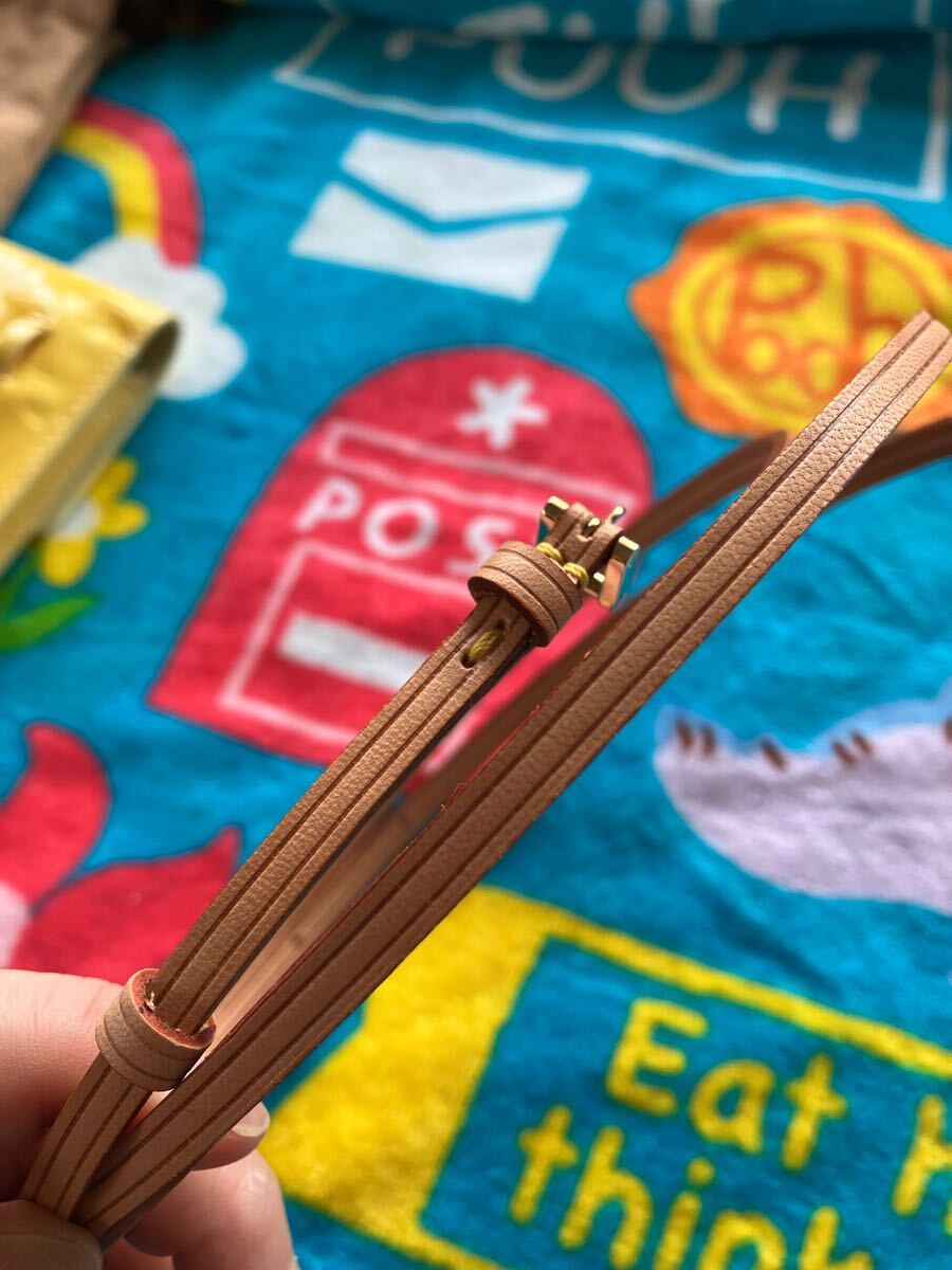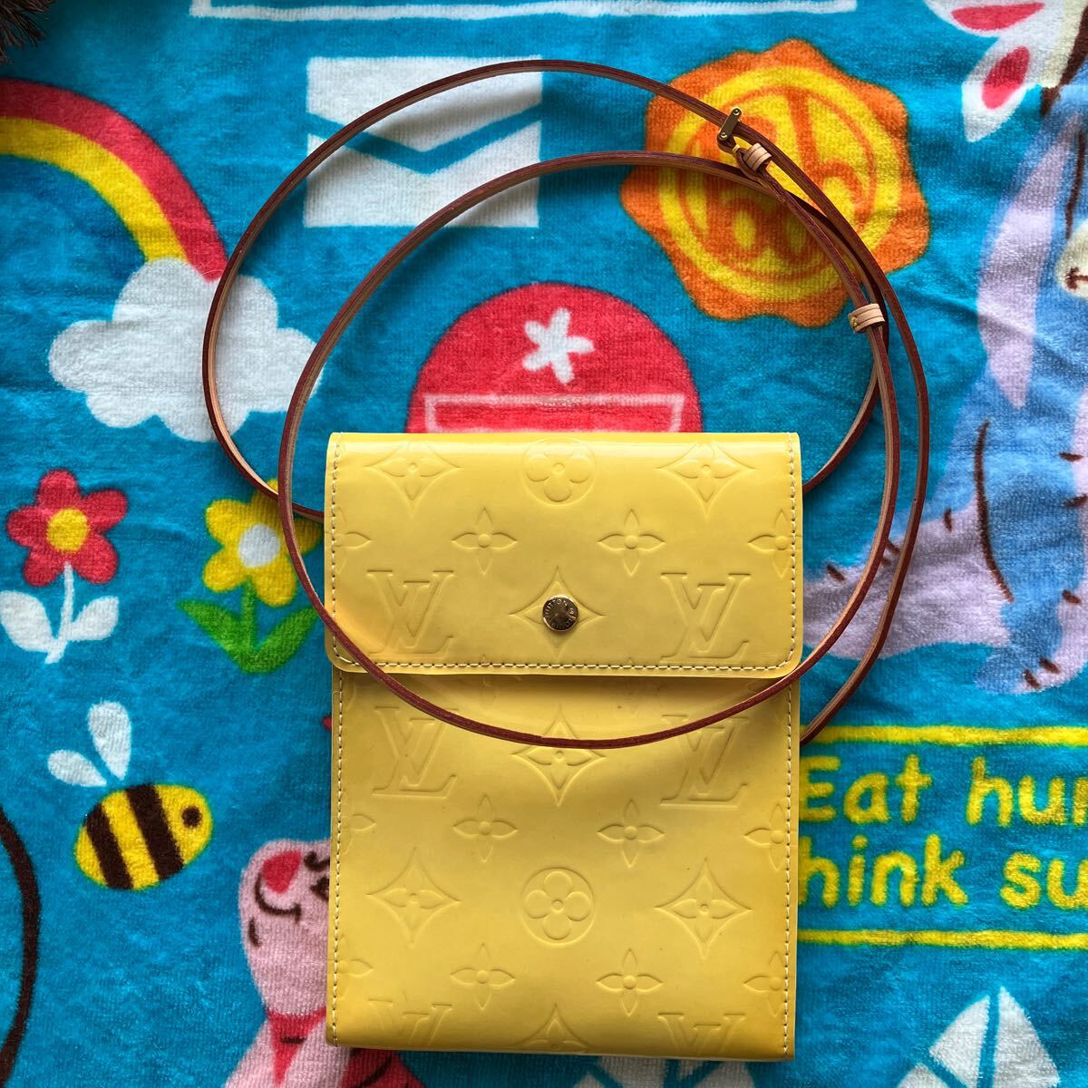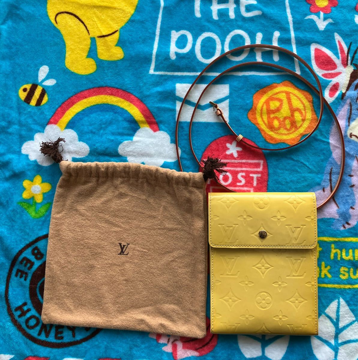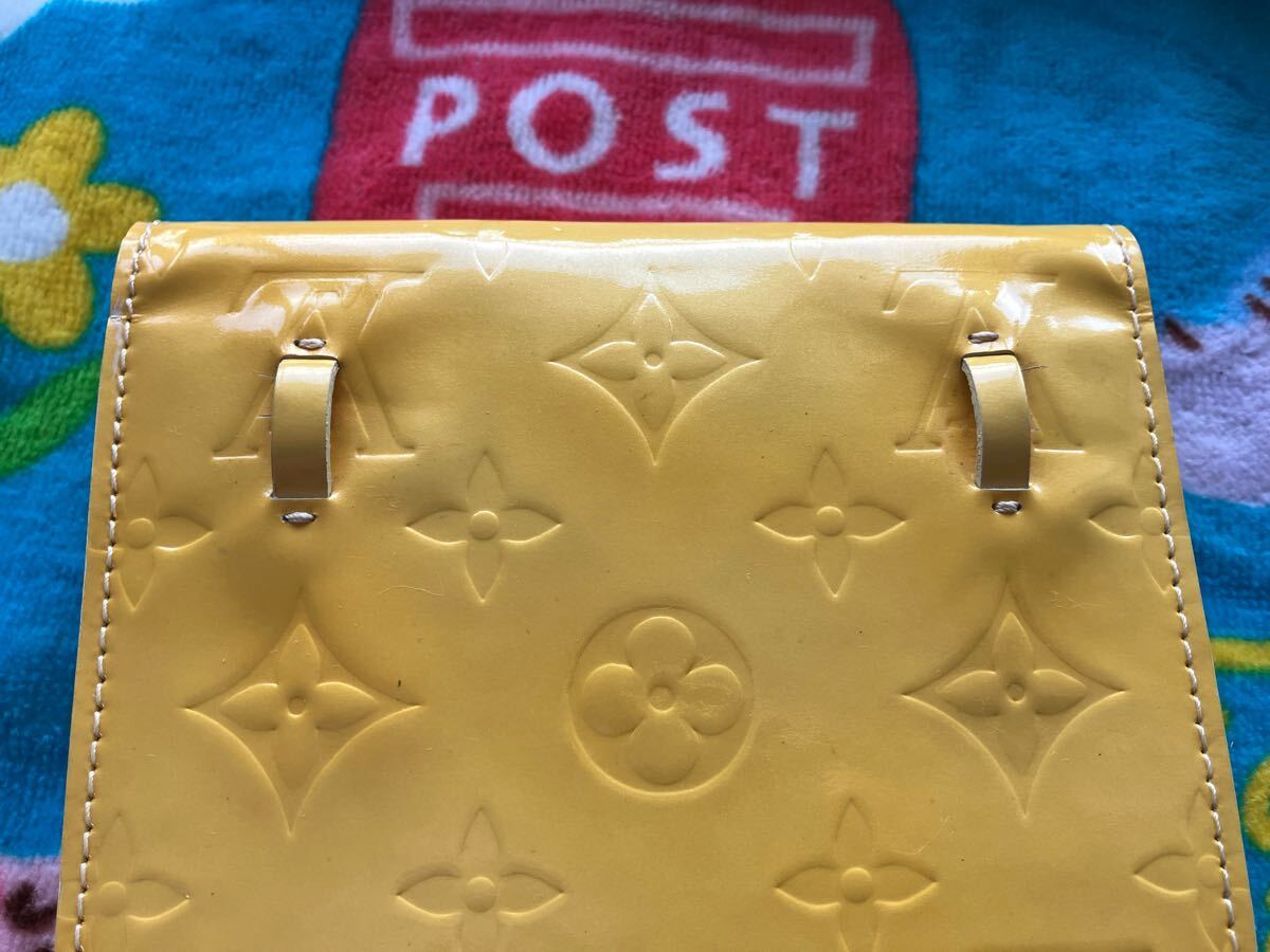 ヴェルニは色移りやヤケが出やすいので、経年並みの色ヤケ、表面のベタ付きがあります。紐はヤケが強かったので、別のモンスリの紐を注文するついでに買い換えました。経年並みの物ですが、サコッシュのように今ならまたお使いに慣れると思います。