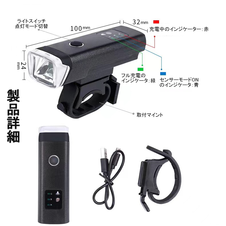 充電ケーブル1本 専用取り付けバンド1本 本体1台 センサーにより自動点灯&明るさの自動調整を行います。 【通勤・夜間ライドに最適】超広角フラッドライトで前方と周囲を明るく照らし、視界を確保。メインスポット(4~40m)を均一に照射し、対向者の目を眩ませず安全。次光斑で前輪周辺を照射、障害物への対応も安心。【スマート光感応機能】光線の暗い場所で自動点灯、明るくなると自動消灯。ライド中に手動で操作する必要なし、両手が自由に。【長時間駆動&急速充電】内蔵リチウム電池、大容量で一晩中高輝度駆動可能。TYPE-C急速充電対応、安全保護機能付きでバッテリーをスマートに保護。スマート電量表示で残量を一目で確認可能。【安全で便利な取り付け】逆さ取り付け・腰挟み・シングルショルダーなど複数の取付方法に対応。3秒で素早く着脱、バックルとゴムバンドで車体を傷つけずしっかり固定。【精密光学設計】カットオフライン設計で照射はクリア、眩しさを抑制。高精度レンズにより光を効率的に配光、主光斑・次光斑・泛光のバランスが最適化。【セット内容】LEDライト本体 ×1取付マウント ×1USB充電コード ×1【注意事項】日常生活防水仕様、暴風雨時は取り外して保管してください。★落札後、取引手続きへお進みください。 商品のご指定できる場合は取引メッセージでご指定ください。 取引メッセージ以外のご連絡は対応できません。