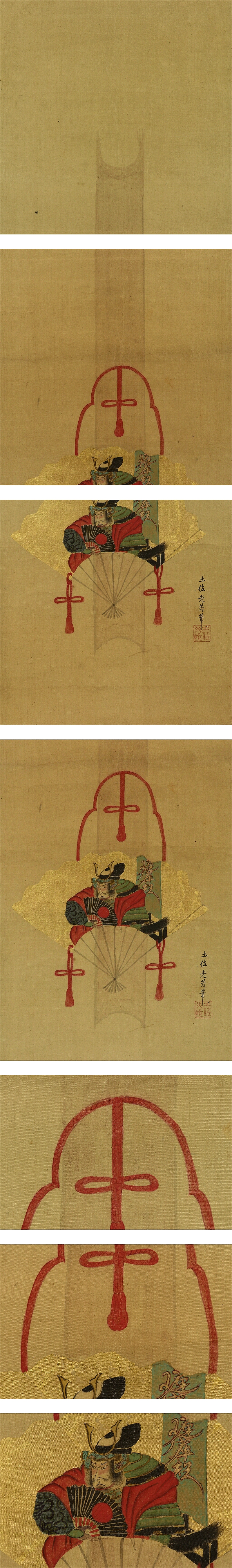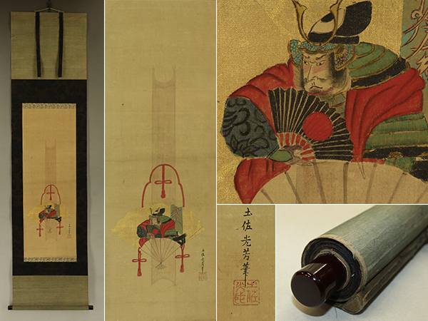| №2503078【模写】土佐光芳【武者絵】◆絹本◆合箱◆掛軸 | |