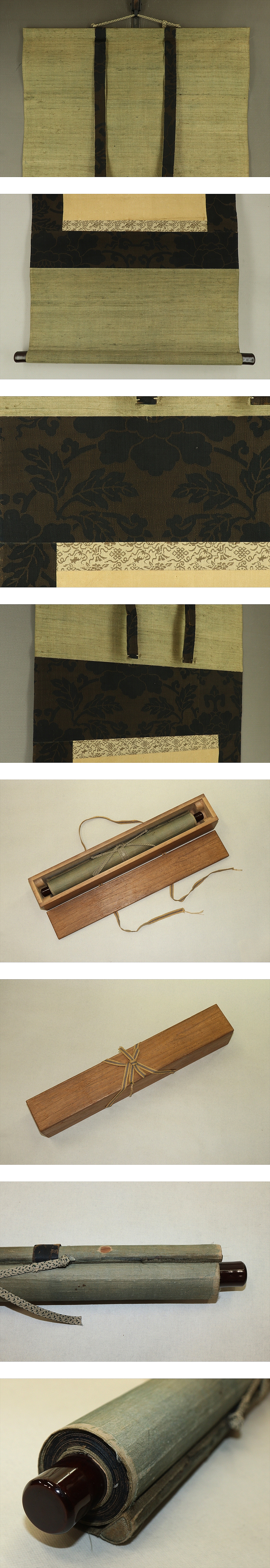 土佐光芳 とさ-みつよし(1700-1772) 江戸中期の土佐派の画家。光祐の子。幼名は藤満丸。 大蔵少輔・弾正少忠・左京少進を歴任する。元文三年の大嘗会に悠紀主基の御屏風を執筆。 延享三年官を辞し、落髪して法名を常覚という。 明和9年(1772)歿、73才。 本紙は、染み、汚れ、折れ、皺、浮き、虫食、ヤケがあります。 表装は、染み、汚れ、折れ、皺、虫食、破れ、ほつれ、剥れがあります。 【サイズ】 作品 横約30cm×縦約85cm 表装 横約42.5cm×縦約169cm |