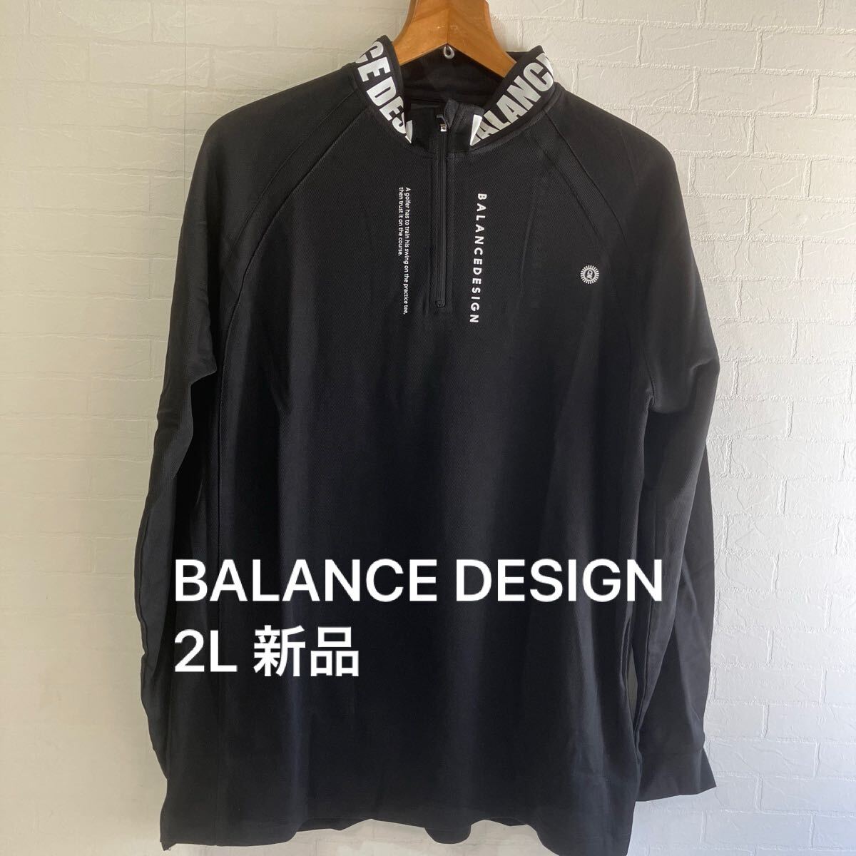 新品 タグ付き バランスデザイン メンズ ハイネックT 長袖 2L ジップアップ 黒 スカル モノトーン 春夏物 ゴルフウェア BALANCE DESIGN