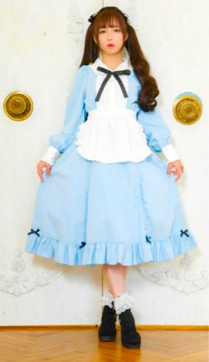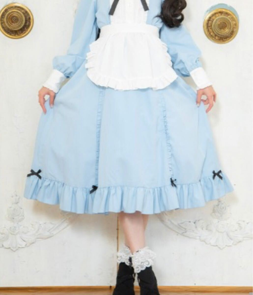 新品 皆方由衣 コラボ エプロン付きスカート Sサイズ サックス メイド服 ロングスカート シンデレラ プリンセス風 白雪姫 コスプレ