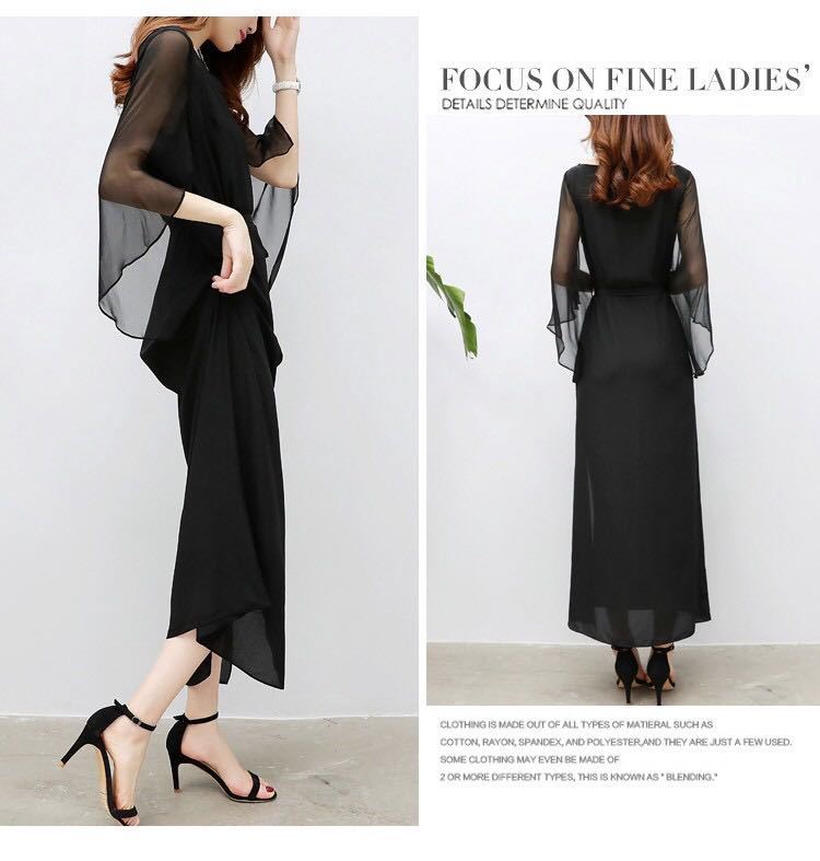 いつでも大人気色ブラック、ロングドレス優雅なAラインがとても目立つように、上品なドレスです。年齢は20代から60代まで通用の一枚になり、サイズはM/L/XL/2XLがあります。パーティー、結婚式、二次会、七五三、入園式、入学式、卒園式、卒業式、同窓会など多くの場面でも活躍できる一品になります。