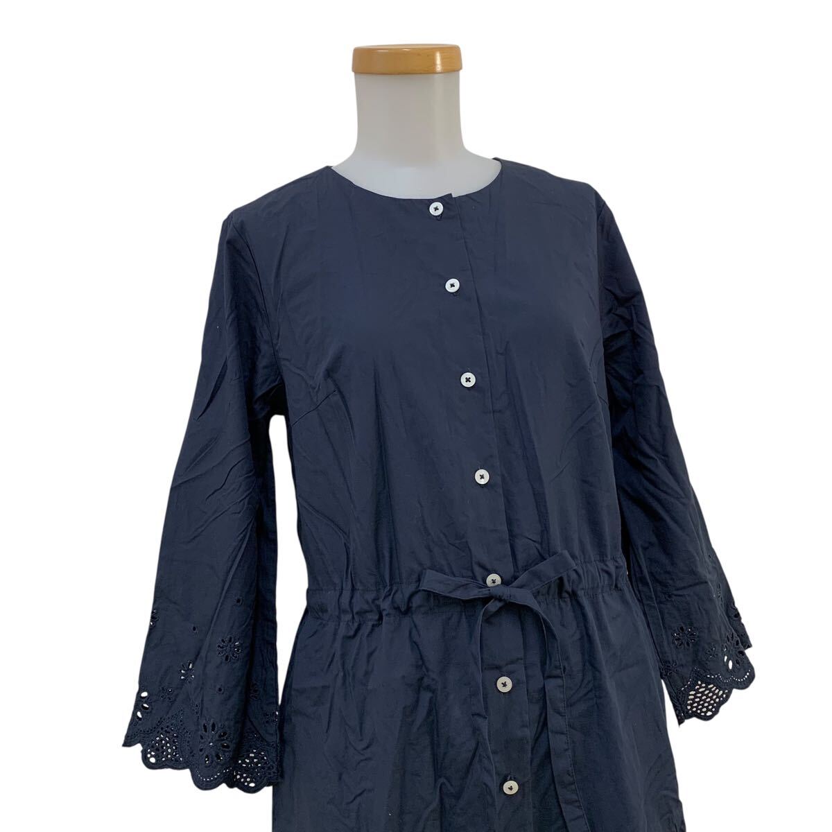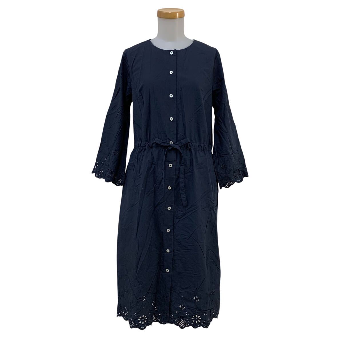 C423-52 MACKINTOSH PHILOSOPHY マッキントッシュフィロソフィー カットワーク パンチングレース レース シャツ ワンピース ワンピ 38 紺