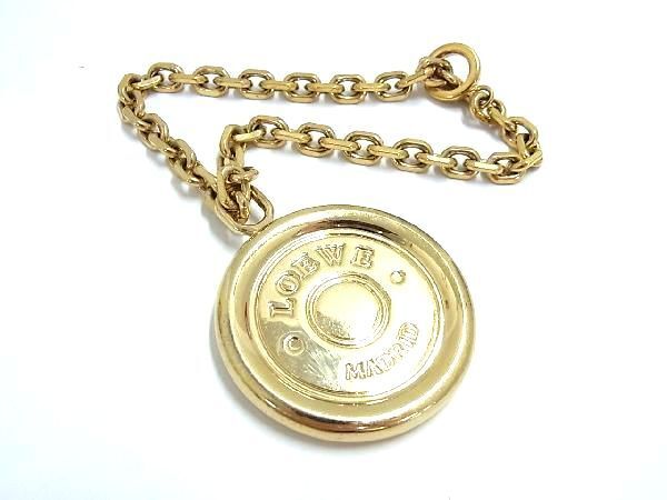 ■美品■ LOEWE ロエベ コインモチーフ バッグチャーム キーホルダー アクセサリー メンズ レディース ゴールド系 DA2397