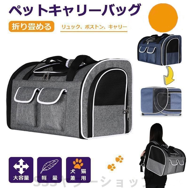 ペットキャリーバッグ 折りたたみ バッグ 3WAY 15kg 2匹収納 リュック ショルダー 猫 犬 ペットリュック 小型 中型 多頭 軽量 手提げ