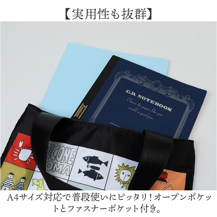商品説明 | ・・【スカーフのようなデザインが特徴】 ・PICONE ACCESSORI(ピッコーネ アッチェッソーリ)のスカーフバッグ。 ・【イタリア×日本】 ・イタリア人アーティストが描いたイラストに、日本人ならではの感性を融合させたブランド。 ・【オシャレなスカーフ風】 ・バッグのフロントはスカーフ風のテキスタイルやサテン調生地でおしゃれ♪ ・【実用性も抜群】 ・A4サイズ対応で普段使いにピッタリ!オープンポケットとファスナーポケット付き。 ・【肩掛けOK】 ・長めに設計されたハンドルで、肩掛けもOK。 ・【デティールまでこだわり】 ・ハンドルの部分は合皮素材を使ったり、ハンドルと内生地はバイカラー仕様◎ ・【ポケット仕様】 ・オープンポケット×1、ファスナーポケット×1 |
