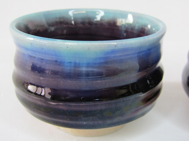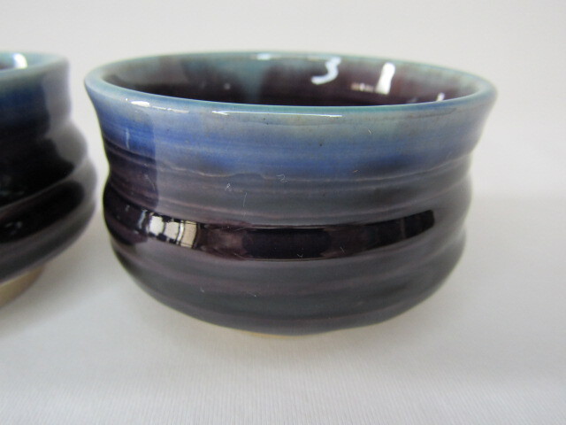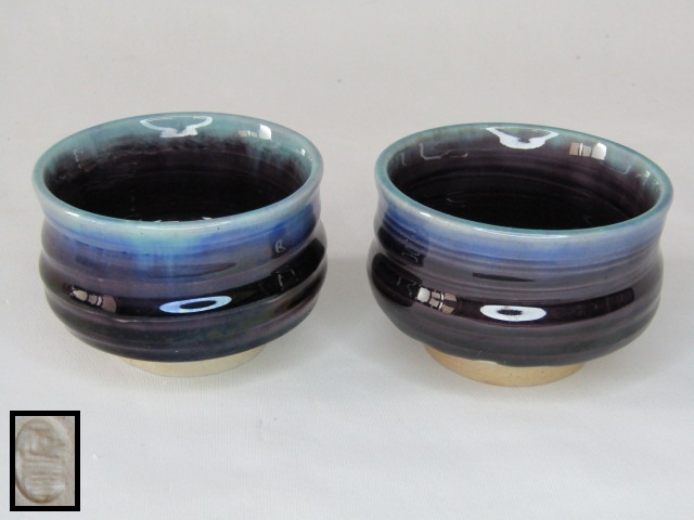 【Y】◇九谷焼 人間国宝 三代 柳雨軒 徳田八十吉 ( 正彦 ) 彩釉 ぐい呑み 一対 Y5-0627-①◇