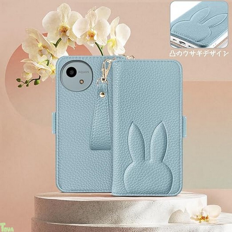 ライトブルー 手帳型 うさぎ 高品質 PUレザー アクオス ウィッシュ Aquos wish5 保護 財布型 スタンド機能 カード収納 ケース カバー