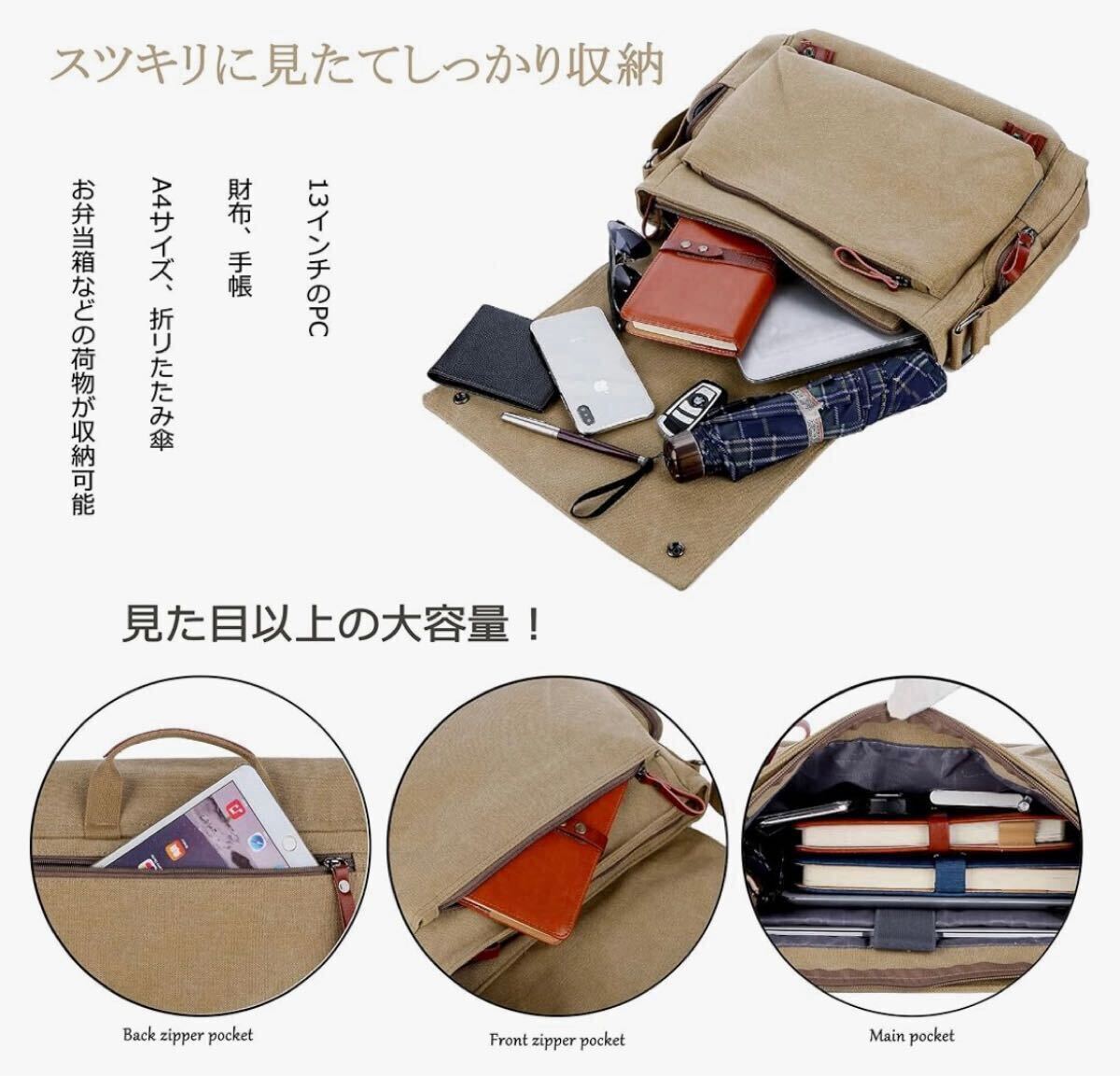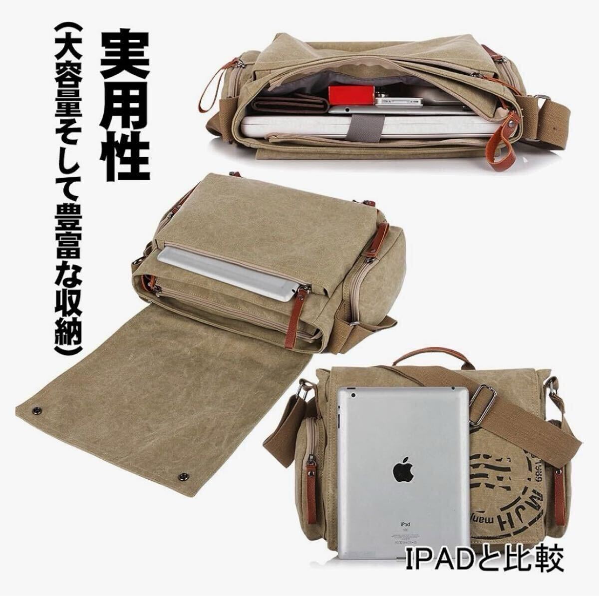 ショルダーバッグ 斜めがけ キャンバス 軽い 帆布 大容量 多機能 肩掛け斜めがけ バッグ a4サイズ 大容量