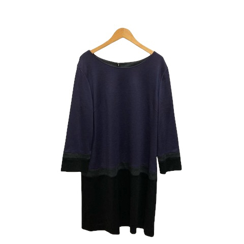 コムサデモード COMME CA DU MODE チュニック ワンピース 7分袖 丸首 総柄 15 ネイビー グレー 黒 ブラック レディース
