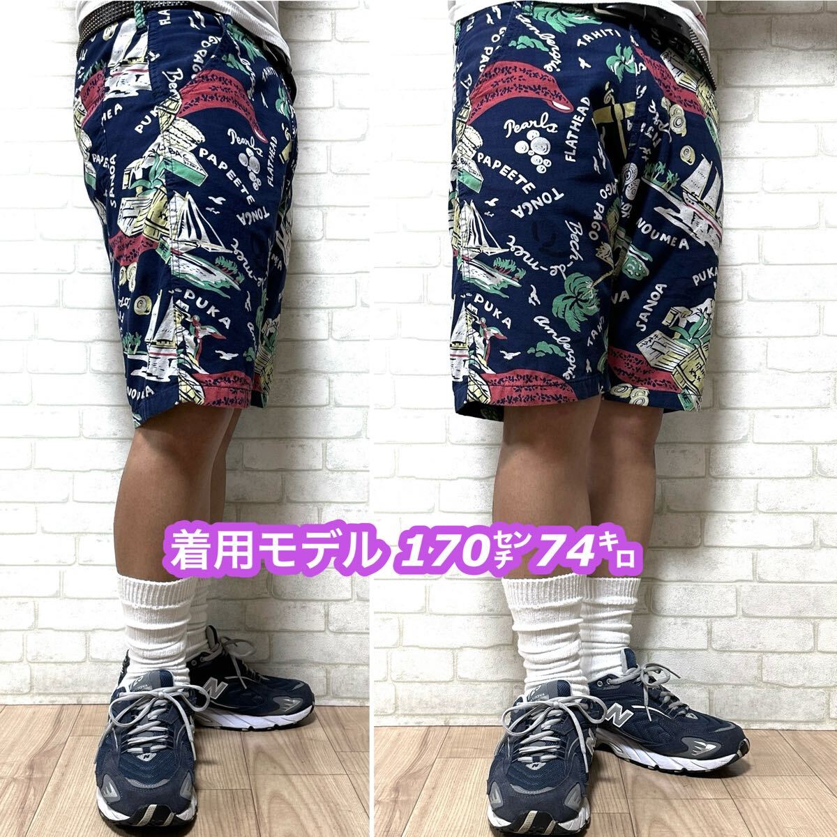 ☆オールコットン素材を使用した柔らかで快適な穿き心地のアイテム。また、コットン素材の裏地も配しており、細部までこだわったディテールもポイント◎更に全体にはロゴやパペーテ、ヤシの木や船などのビーチ、南国デザインの総柄を配置した目を惹くショートパンツです。