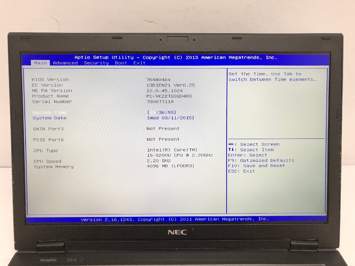 ジャンク/ NEC PC-VK22TGSGD4DS Intel Core i5-5200U メモリ4.1GB ストレージ無し 【K16460】