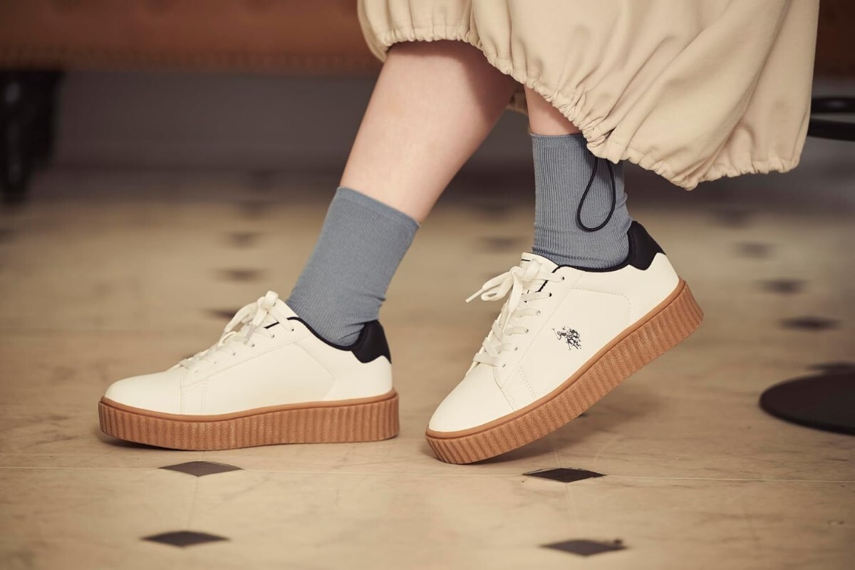 シンプルなカジュアルデザインのスニーカー。普段履きや通勤通学までご利用いただけます。