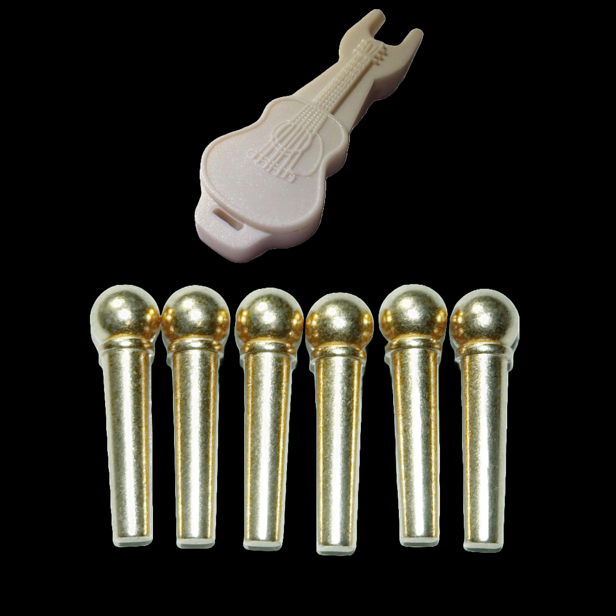 真鍮製 金色 アコースティックギター アコギ ギター ブリッジピン★ブリッジピン抜き ピンプラー 白色