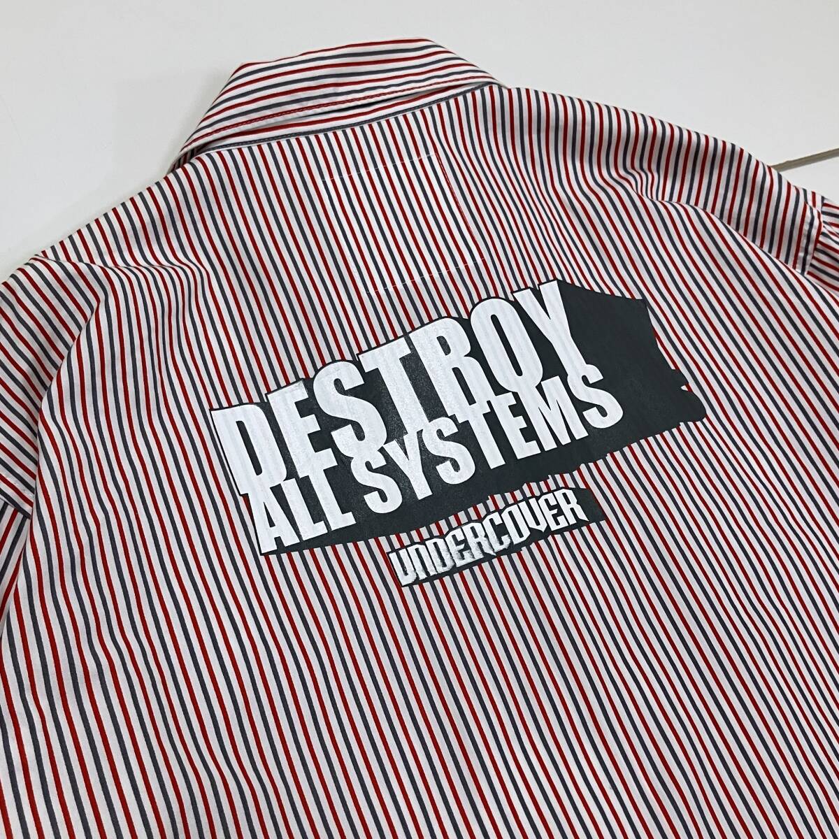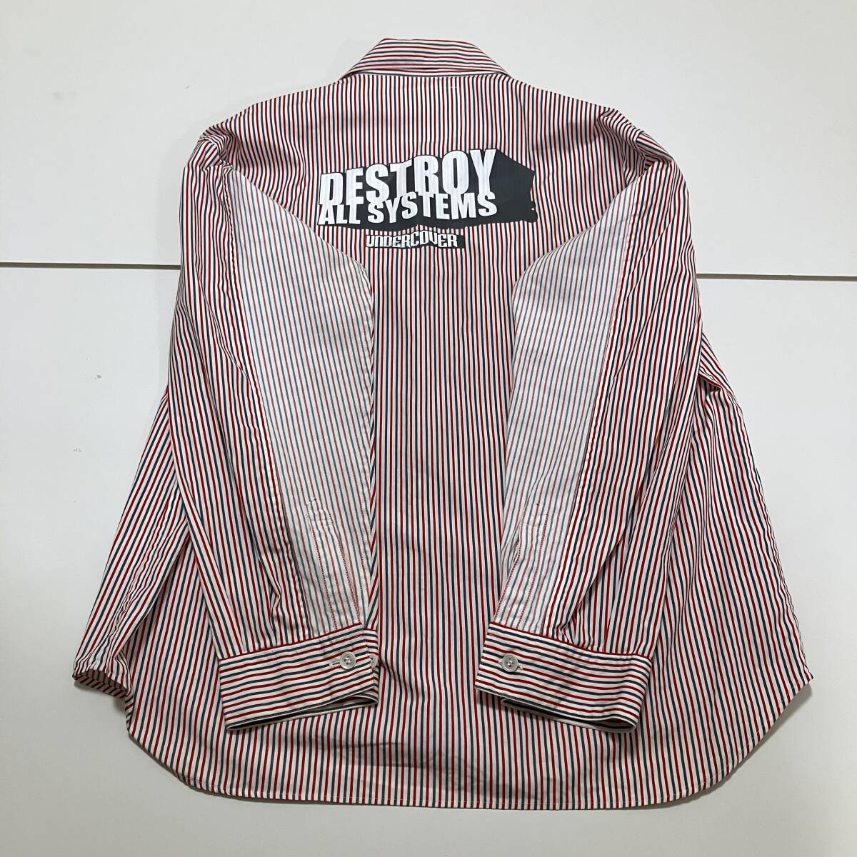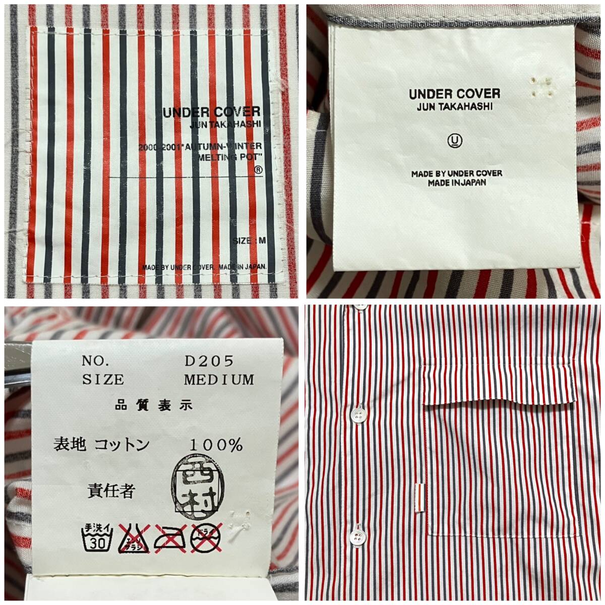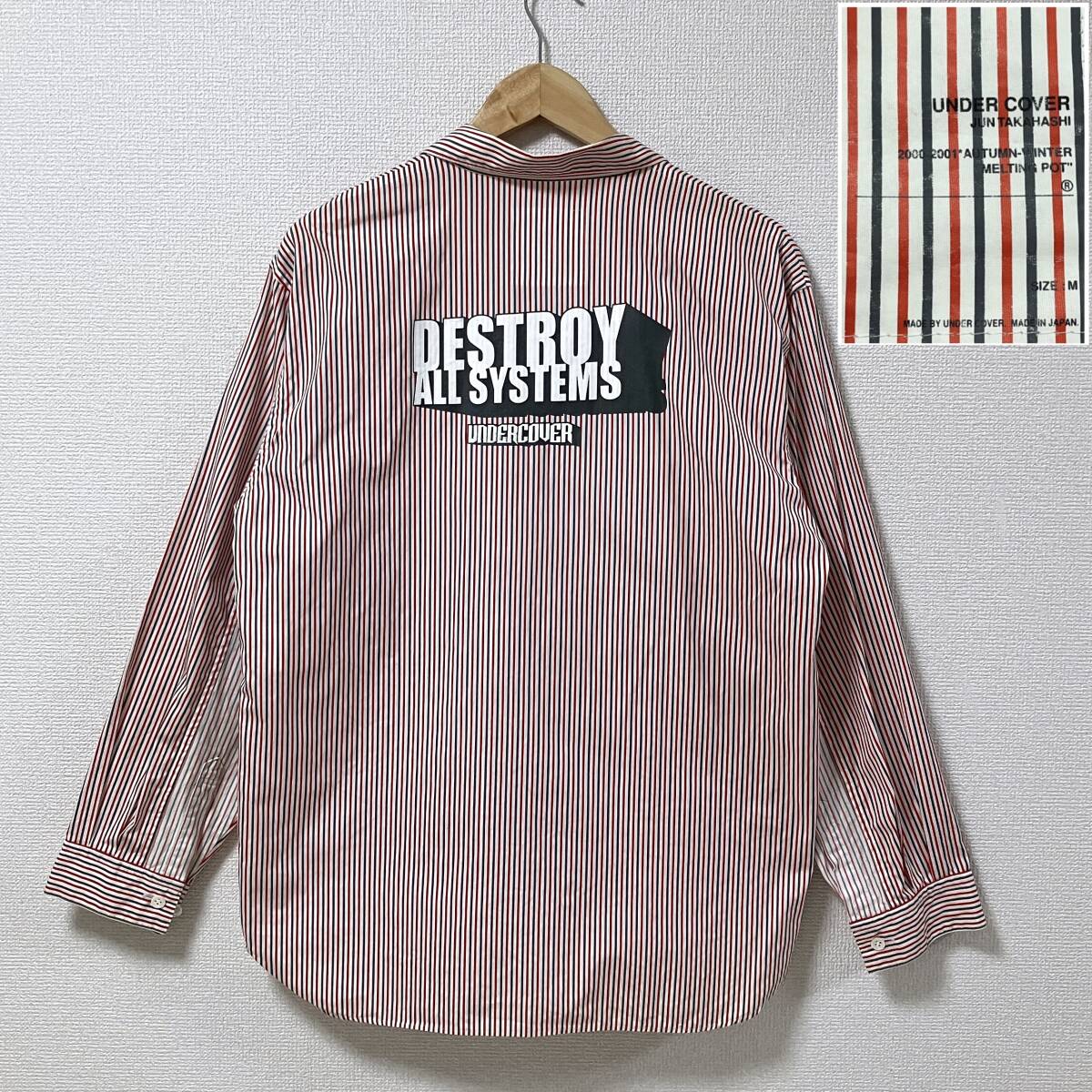 2000AW UNDERCOVER MELTING POT期 ストライプ 開襟 バックプリント 袖切替 長袖 シャツ Mサイズ アンダーカバー VINTAGE archive 5050536