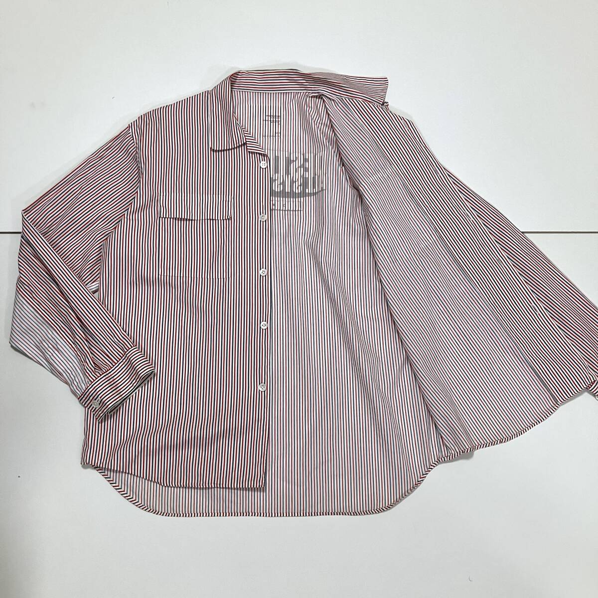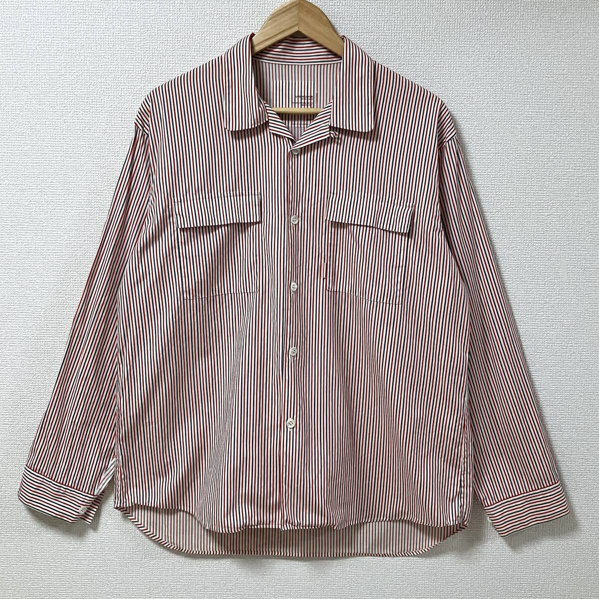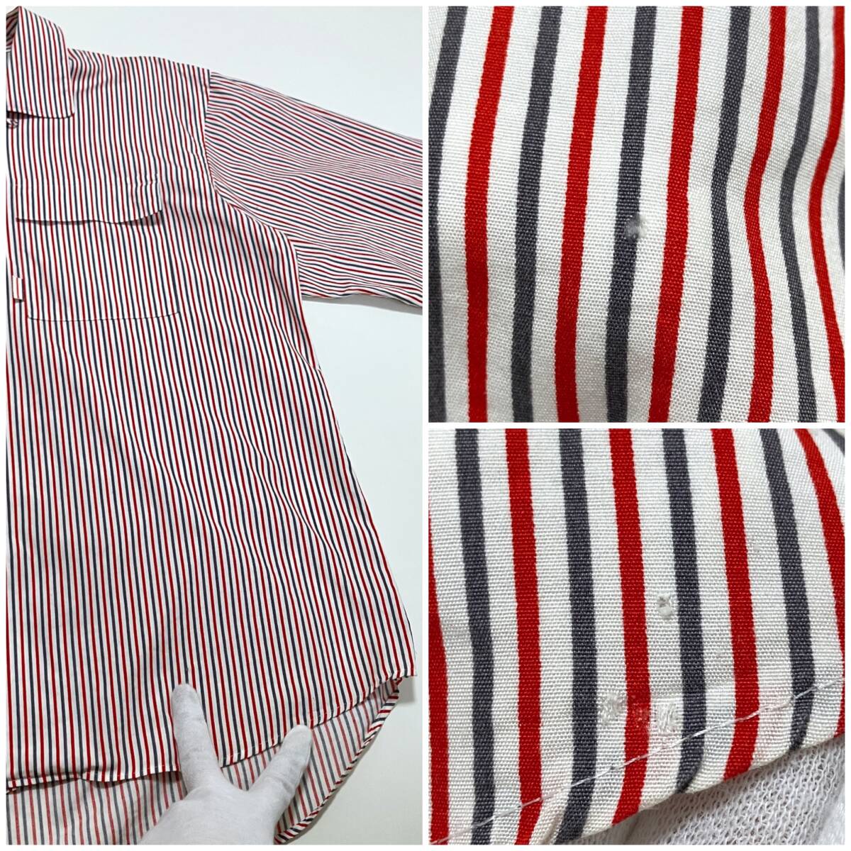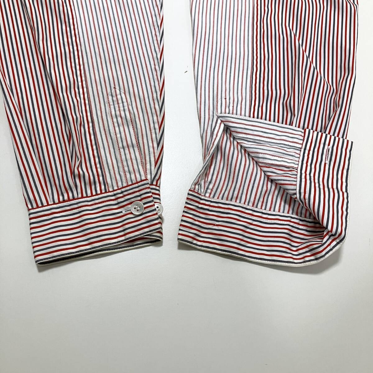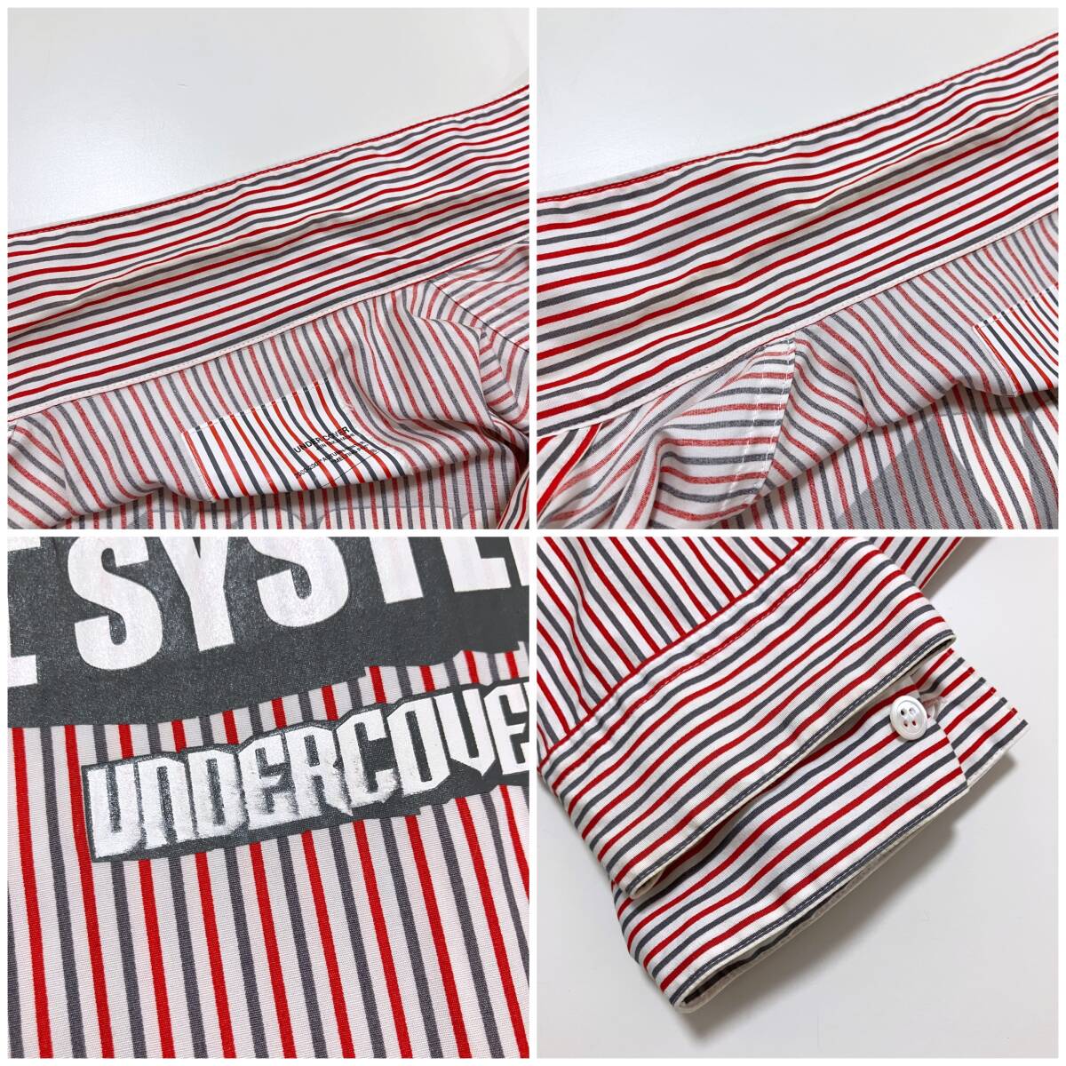 2000AW UNDERCOVER MELTING POT期 ストライプ 開襟 バックプリント 袖切替 長袖 シャツ レッド × グレー × ホワイト