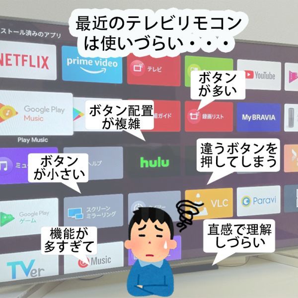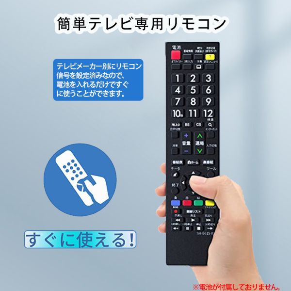 【簡単】シャープ製テレビ アクオスに設定済みで、登録作業をすることなくそのまま使えるかんたんTV用リモコンです。