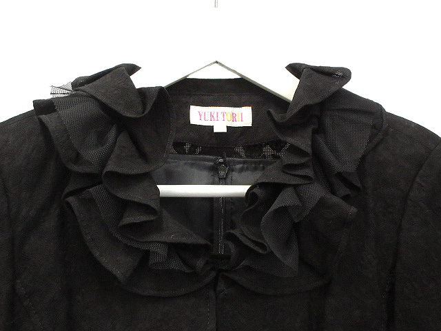 ユキトリイ YUKI TORII セットアップ ワンピース ジャケット 7 ブラック 黒 フリル レース ジャガード フォーマル スーツ レディース