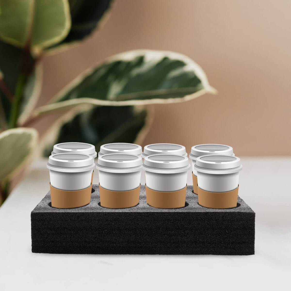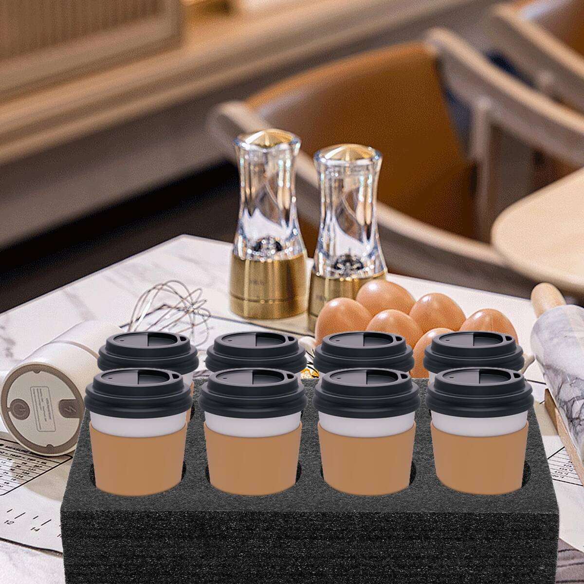 ??【飲料包装ボックス】使い捨てフォームテイクアウトカップホルダー8穴カップドリンクキャリア食品配達ドリンクホルダーホットコールドドリンク用ブラック。飲み物やその他のレジャー用品を整理整頓し、すぐに使えるようにします。
