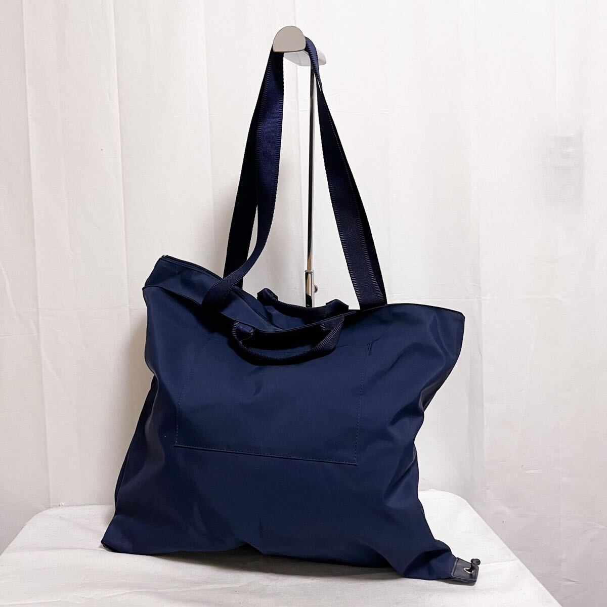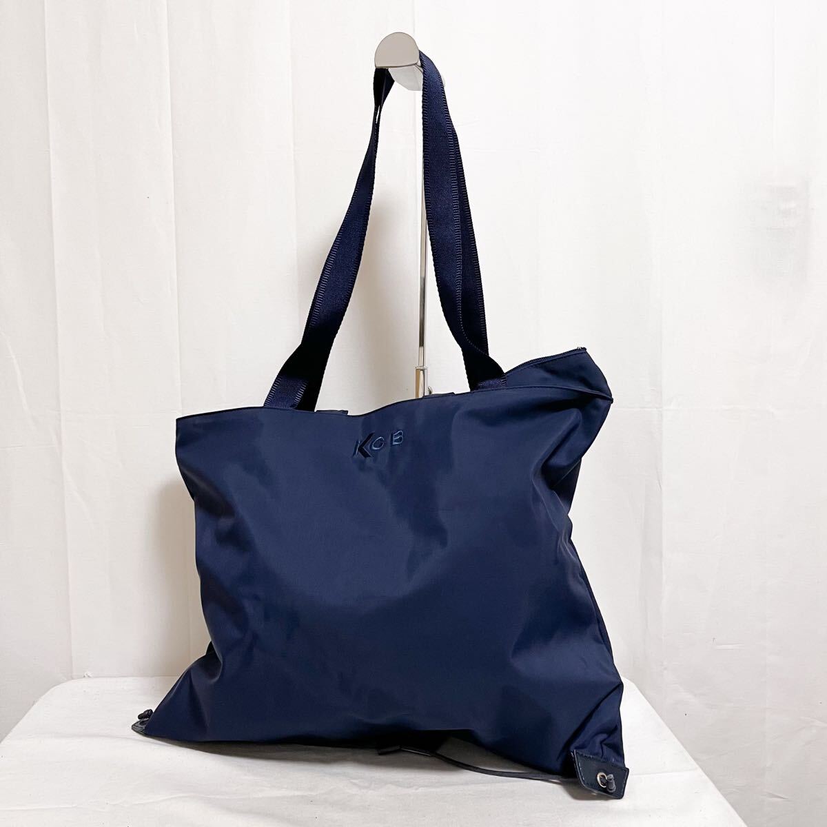 和771★ KCB ケイシービー トートバッグ 肩掛けバッグ ビッグ ロゴ刺繍 ネイビー レディース