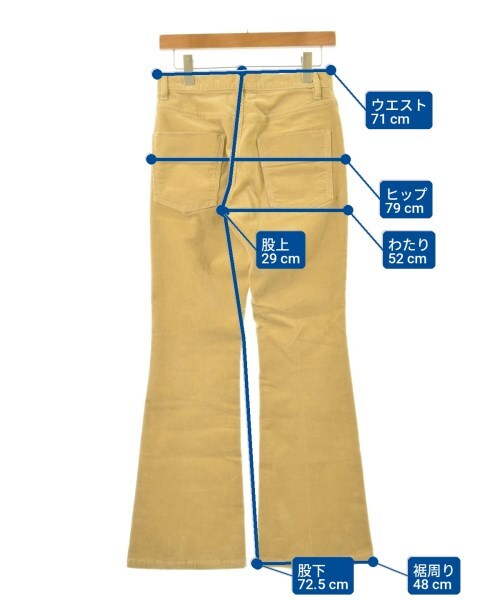 | ウエスト:71cm,裾周り:48cm,ヒップ:79cm,わたり:52cm,股上:29cm,股下:72.5cm |
