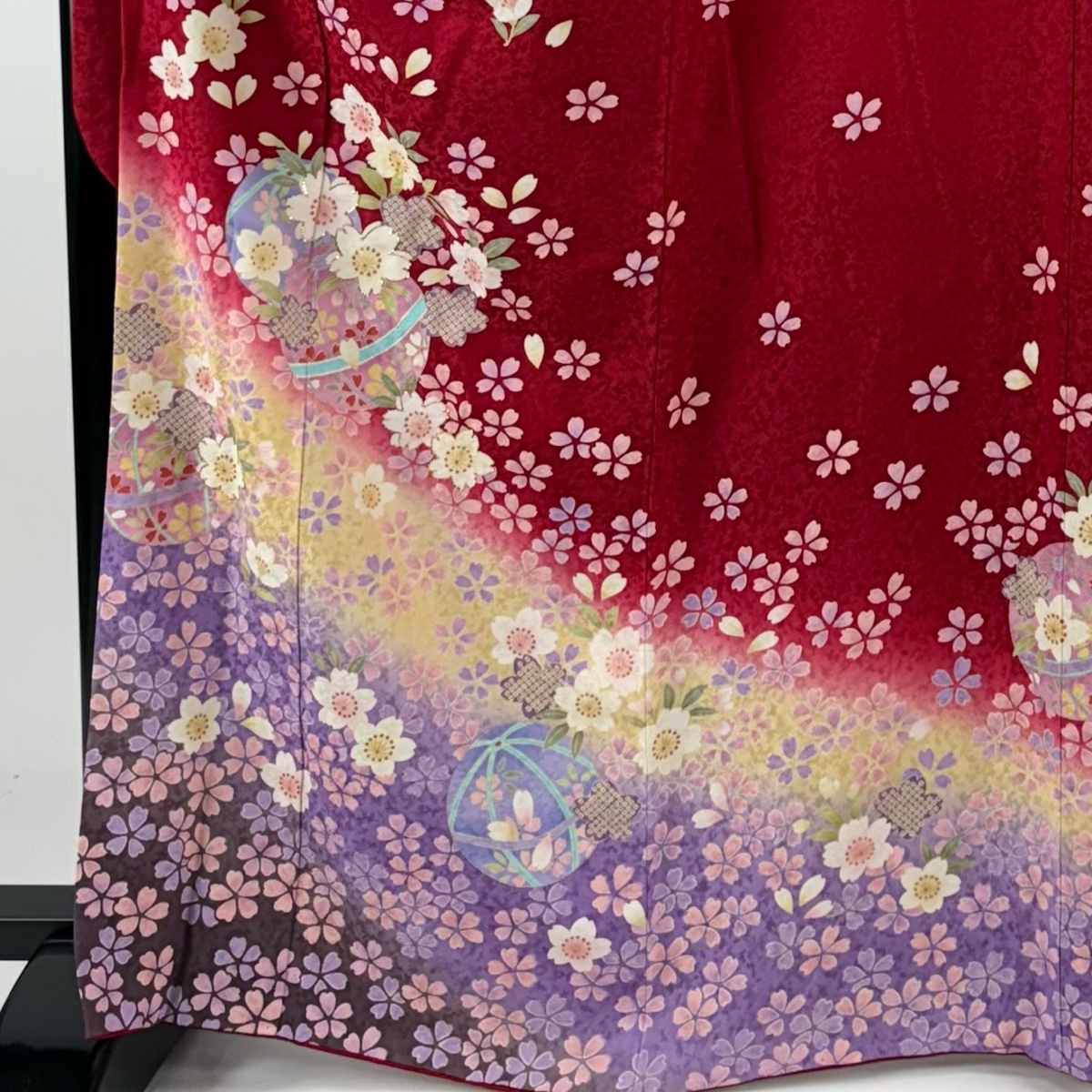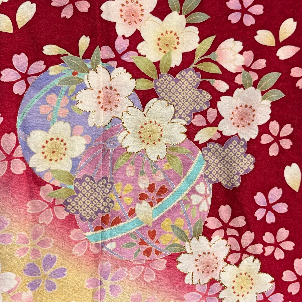 振袖 名品 手鞠 桜 金彩 箔 赤 袷 身丈164.5 裄丈68 L 正絹 【中古】 |
