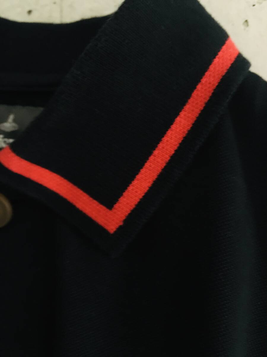 ◆襟に赤いラインがデザインされボタンは2つとシンプルながらも高級感のあるデザインです。左胸にはワンポイントのオーブロゴが施されております。