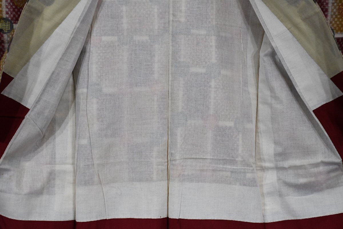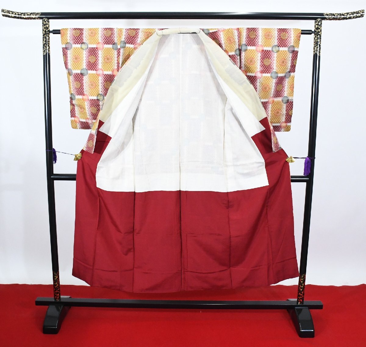 コメント | 前身頃衽、衿、裏地等にシミ汚れがあります。新品ではありませんので、中古品という扱いです。少したたみジワがある場合がございます。ご了承の上、ご入札をよろしくお願いいたします。 |