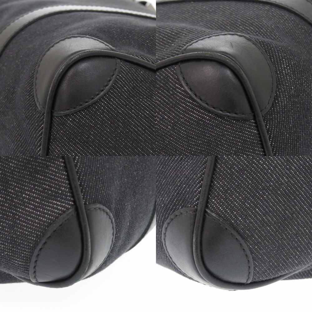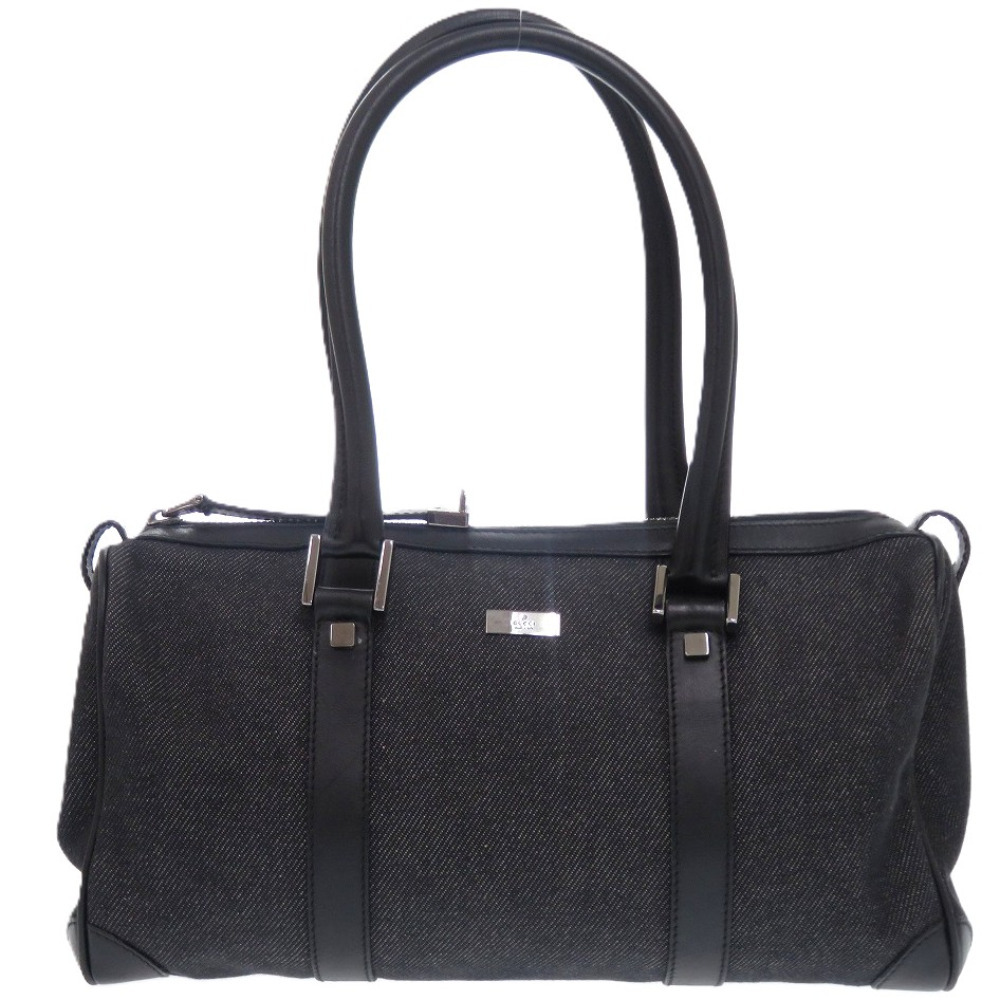 美品 グッチ デニム レザー ブラック シルバー金具 30458 ミニ ボストンバッグ ハンドバッグ 黒 0670 GUCCI