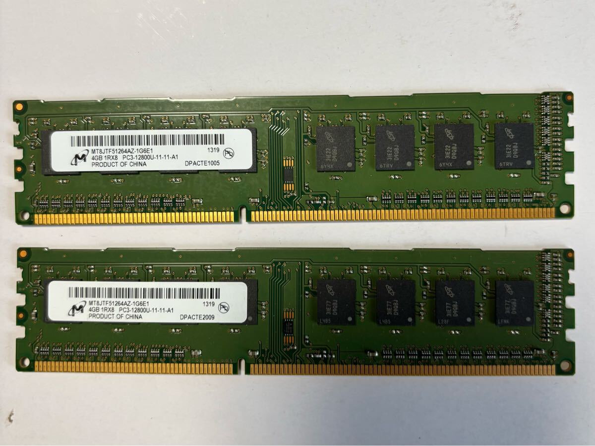 Micron メモリ 4GB 1Rx8 PC3-12800U-11-11-A1 4G×2枚 計8GB