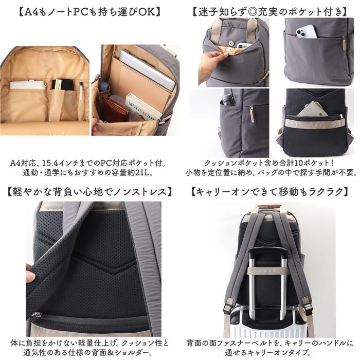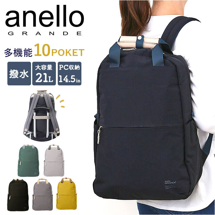 | 商品説明 | ・・【デイリーに使えてお出かけの味方】 ・軽くて優しい♪使い勝手抜群な、anelloGRANDE サブレ 10ポケットデイパック。 ・【可愛らしいサブレシリーズ】 ・さらっとふわっと軽いナイロン生地に、ナチュラルカラーで仕上げた合皮の引き手がおしゃれ☆ ・【ガバっと開くダブルファスナー】 ・左右どちらからもオープン。中身を確認しやすく、出し入れスムーズ。 ・【A4もノートPCも持ち運びOK】 ・A4対応、15.4インチまでのPC対応ポケット付。通勤・通学にもおすすめの容量約21L。 ・【迷子知らず◎充実のポケット付き】 ・クッションポケット含め合計10ポケット!小物を定位置に納め、バッグの中で探す手間が不要。 ・【軽やかな背負い心地でノンストレス】 ・体に負担をかけない軽量仕上げ。クッション性と通気性のある仕様の背面&ショルダー。 ・【キャリーオンできて移動もラクラク】 ・背面の面ファスナーベルトを、キャリーのハンドルに通せるキャリーオンタイプ。 ・【リュックを掛けたり便利な持ち手】 ・持ち手を使って、フックなどに掛けておける!リュックを下ろすシーンでも便利。 ・(※1)持ち手はスナップボタンでまとめることが可能です。 ・【ちょっとの雨なら大丈夫】 ・汚れや水滴を弾きやすい、両面はっ水加工済み。お手入れも拭き取るだけ。 ・(※2)完全防水ではありません。 ・【持つ人を選ばないユニセックス仕様】 ・年代や性別問わず持ち歩ける、シンプルなデザイン。お気に入りのカラーをチョイス! ・【ポケット仕様】 ・内側:クッションポケット×1、オープンポケット×2、ペンポケット×1、ボトルポケット×1 ・前面:マグネットポケット×1、ファスナーポケット×1 ・サイド:オープンポケット×2 ・背面:シークレットポケット×1 |
