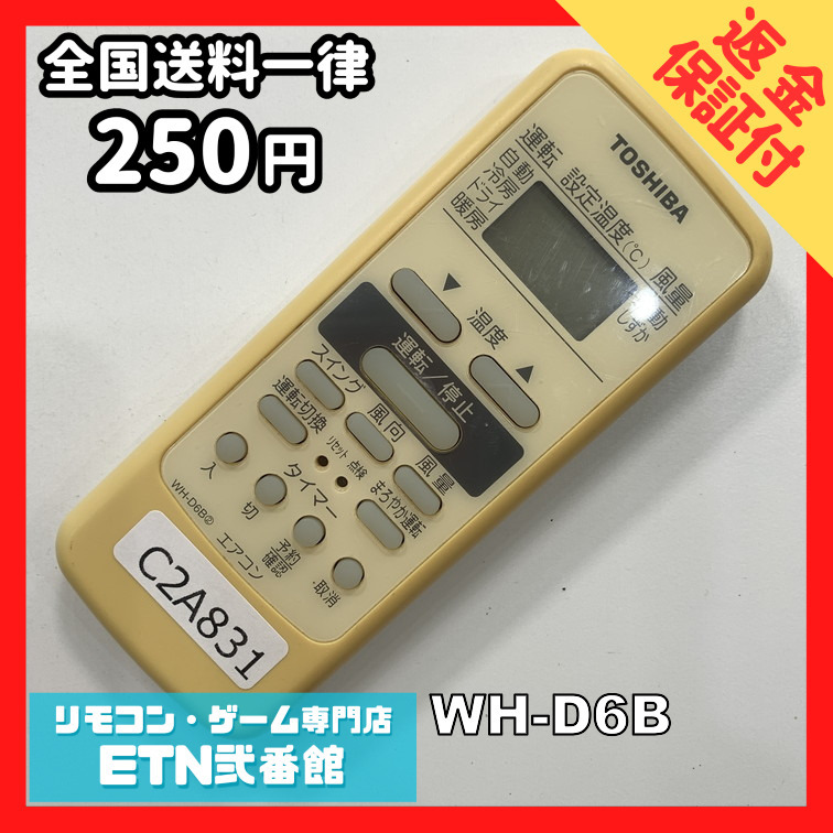 C2A831 【送料250円】エアコン リモコン / TOSHIBA 東芝 WH-D6B 動作確認済み★即発送★ 冷房 暖房