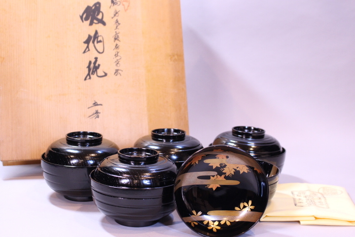 q-6683 輪島塗 蒔絵吸物椀5客 共箱