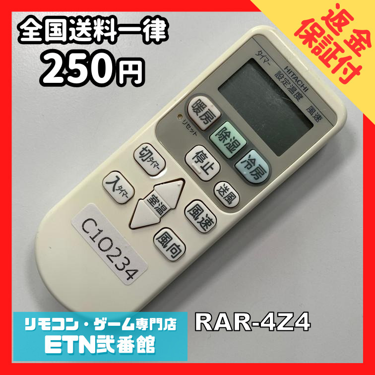 C1O234 【送料250円】エアコン リモコン / 日立 ヒタチ HITACHI RAR-4Z4 動作確認済み★即発送★ * 冷房 暖房