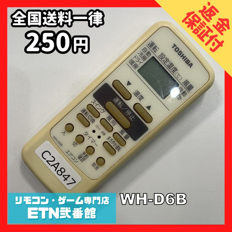 C2A847 【送料250円】エアコン リモコン / TOSHIBA 東芝 WH-D6B 動作確認済み★即発送★ 冷房 暖房