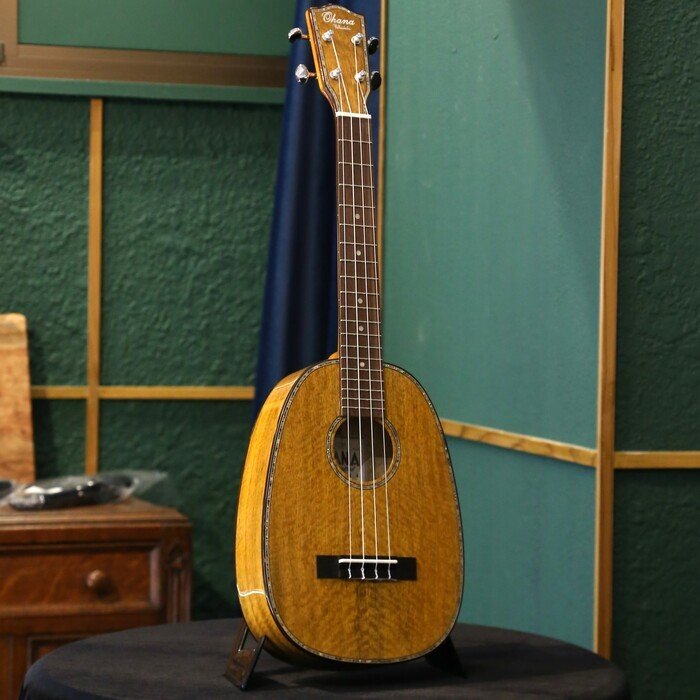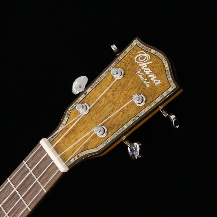Ohana Ukulelesは、生物医学工学の仕事をしていたLouis Wuが自分の人生の中で新しいキャリアを踏み出すことを決断し、2004年に立ち上げたブランドです。 家族経営の会社として掲げたものは、“音質と品質”の保証でした。 「楽器がどのように作られるか?」ということを最重要視し、“最高の音質と品質”の楽器を作ることが、Ohana Ukulelesの目標です。 全ての楽器はカリフォルニアの本社倉庫で、検品と調整をして出荷されています。 PKT-220Gは、17"(431.8mm)スケールを採用したテナー・サイズのウクレレです。 ボディー・トップ、サイド&バックにソリッド・マンゴーを使用し、グロス・フィニッシュを施したパイナップル・シェイプのボディーにロゼッタとパーフリングはアバロンで装飾されています。 チューナーは、信頼性の高いGroverのオープン・ギアを搭載しています。 オハナ・ロゴ入りのギグバッグが付属します。 ※撮影に使用したスタンドは付属しません。 ↓↓気になるサウンドはこちらでチェック↓↓ ![]() SPEC ■Top: Solid Mango ■Back & Sides: Solid Mango ■Binding: Hardwood Fretboard & Headstock, Tenor Pineapple-shaped Body ■Fretboard & bridge: Hardwood ■Inlays: Abalone Rosette, Abalone Top and Headstock Purfling ■Fret Markers: Pearloid Dot Inlay Markers on Frets # 5, 7, 10, 12 & 15 ■Pearloid Side Markers on Frets # 5, 7, 10 & 12 ■Tuners: Chrome Grover Geared ■Nut & Saddle: Bone ■Finish: Gloss ■Frets: 14 Frets to Body; Total 19 Frets ■Scale Length: 17" (431.8mm) ■Body Length: 11-9/16" (293.7mm) ■Overall Length: 26" (660.4mm) ■Body Width: 8-7/16" (214.3mm) ■Body Height: 2-3/4" (69.85mm) ■Overall Body Height: 3-1/4" (82.55mm / including bridge & saddle) ■Nut Width: 1-7/16" (36.51mm) ■Strings: Aquila ■Case: Gigbag |