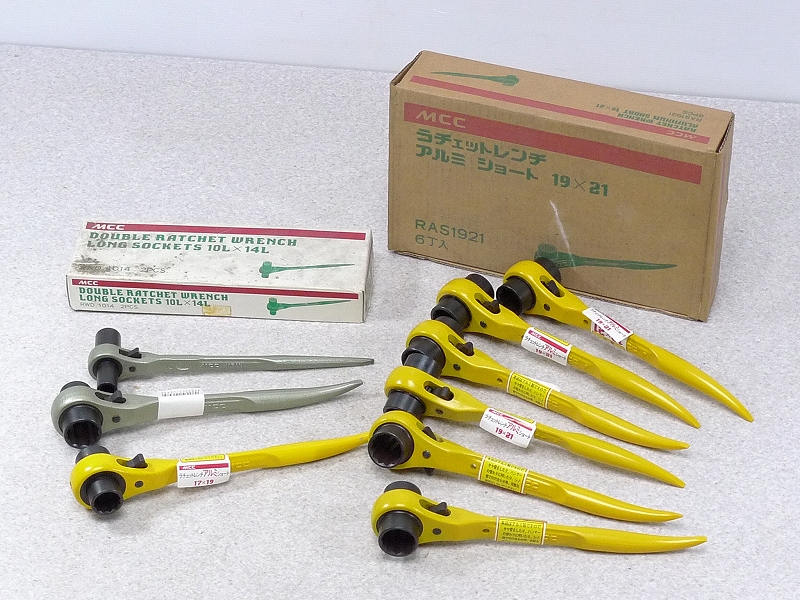 80FK3166○MCC/ラチェットレンチ/アルミショート 19×21 17×19/短シノ 17×21/両ロングラチェットレンチ 10×14 9丁セット