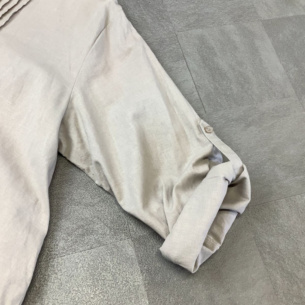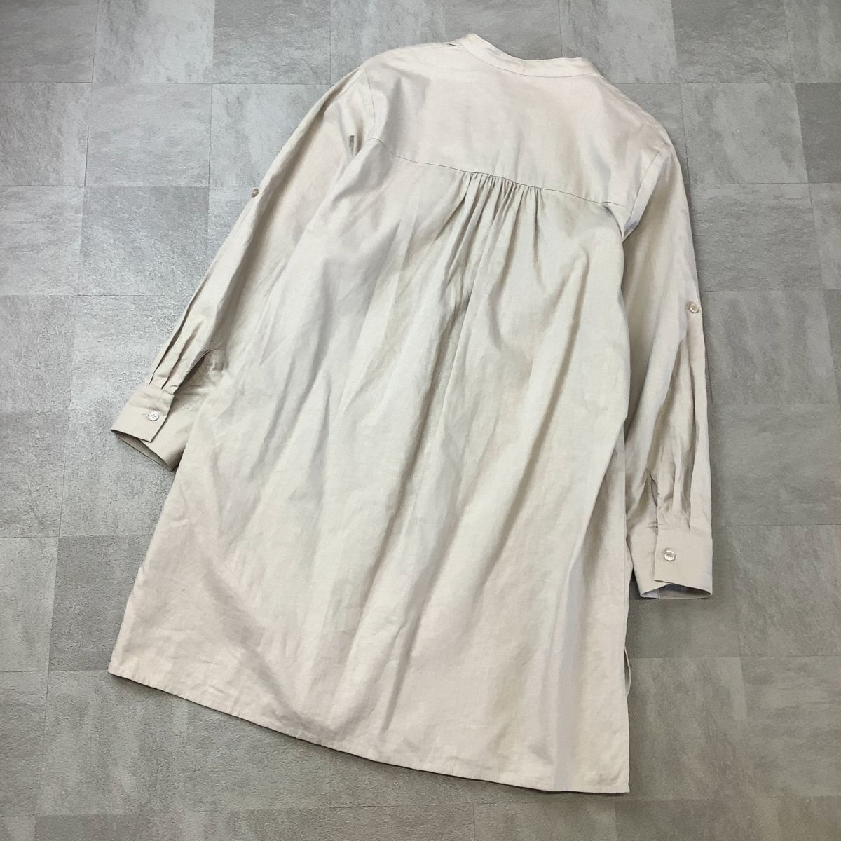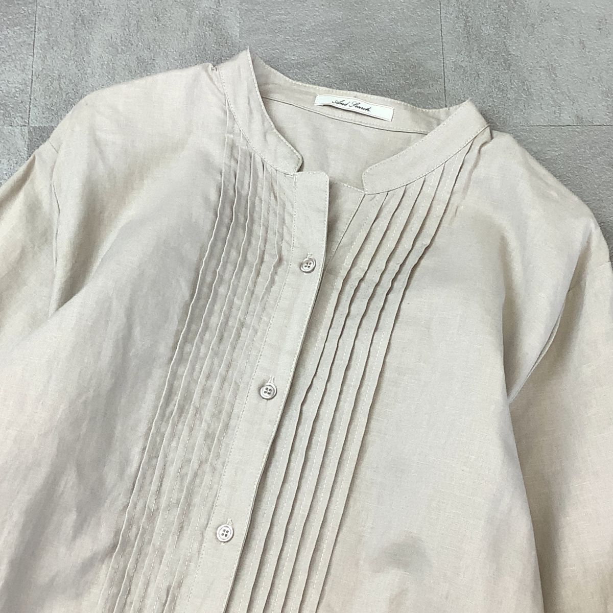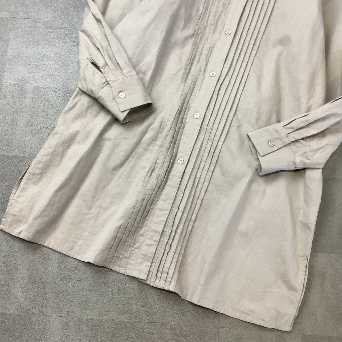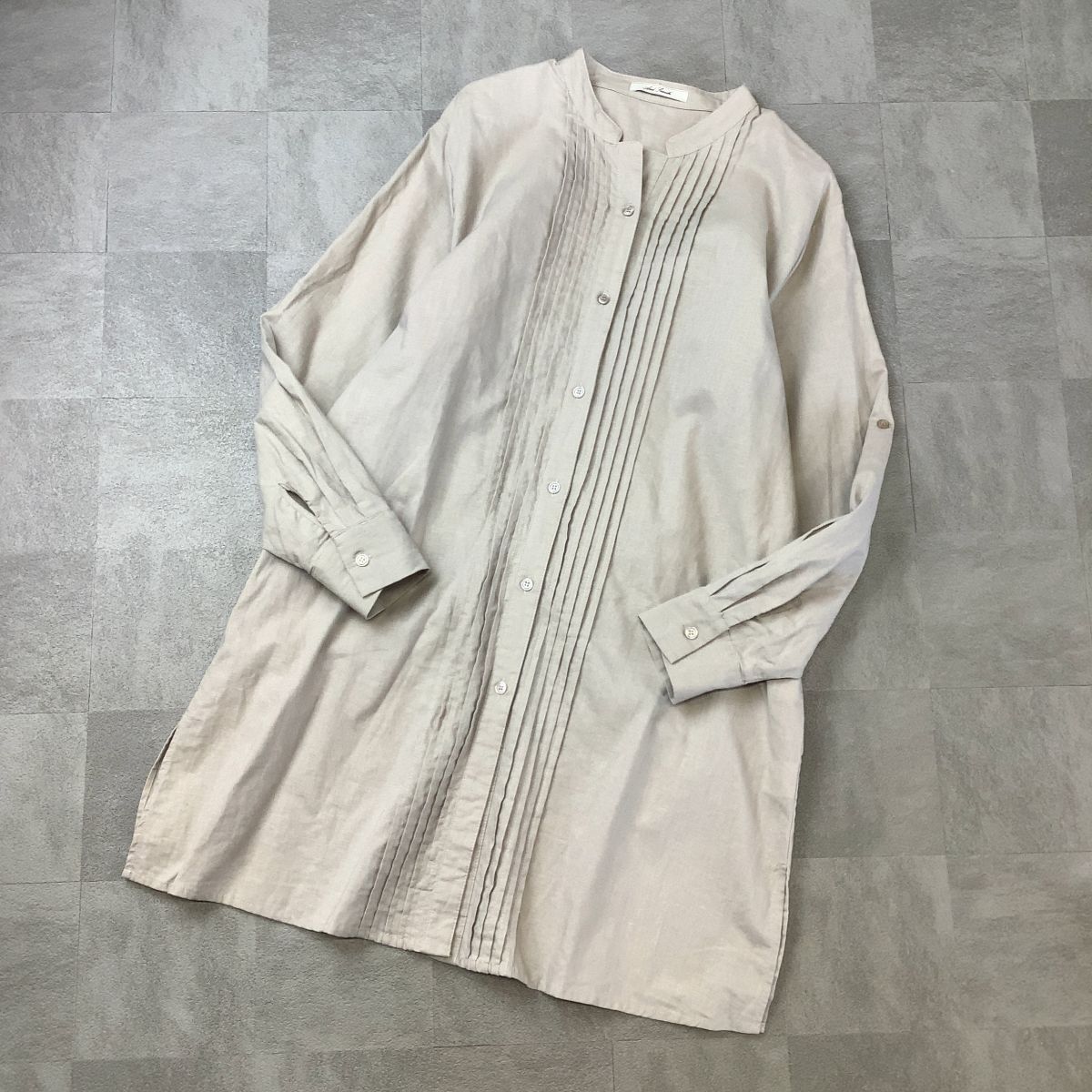 美品 【爽やかなリネン100%】 And fearch リネン タック ロングワンピース レディース L 生成り