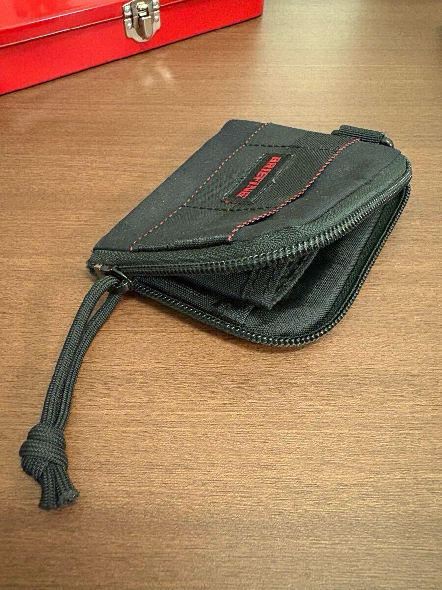 二つ折りのお札や小銭も入り、カード類も入ります。
