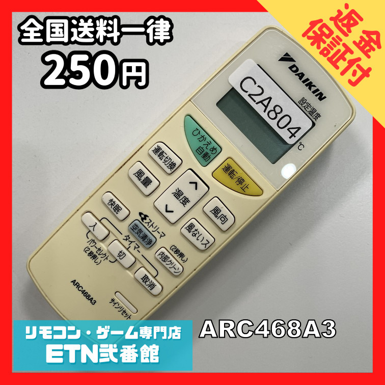 C2A804 【送料250円】エアコン リモコン / Daikin ダイキン ARC468A3 動作確認済み★即発送★ 冷房 暖房