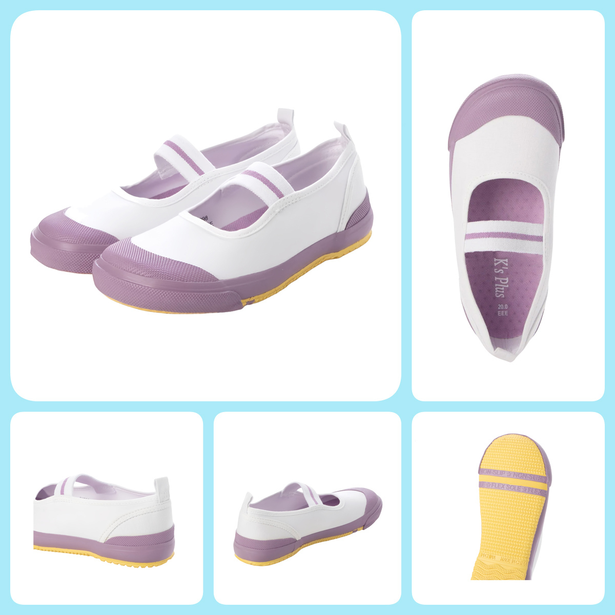 2色コンビのデザインがかわいい靴底は、足の曲がりと同じ位置で曲がるフレックスソールを採用、柔軟性・屈曲性・耐摩耗性に優れています。