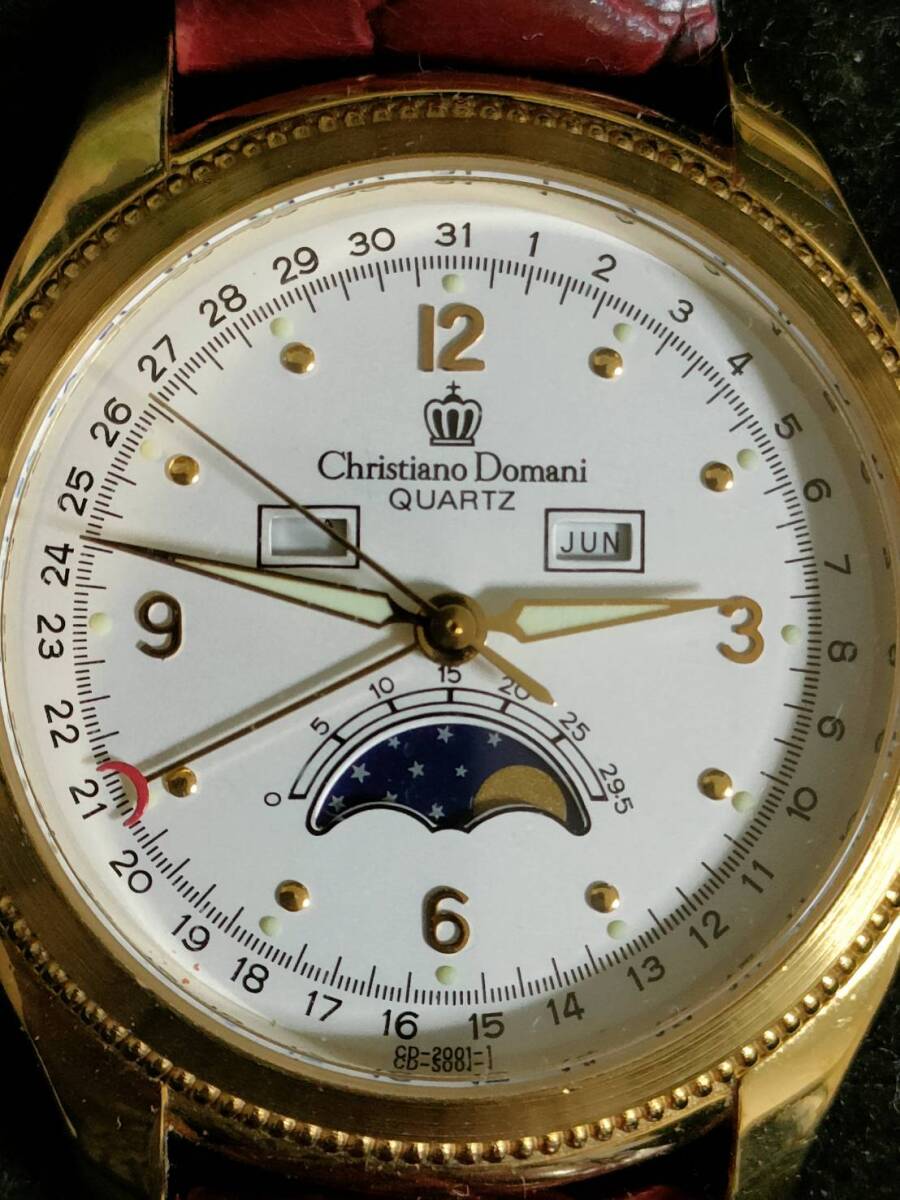Christiano Domani (クリスチャーノドマーニ) ムーンフェイズ ポインターデイト クォーツ腕時計【送料込み】