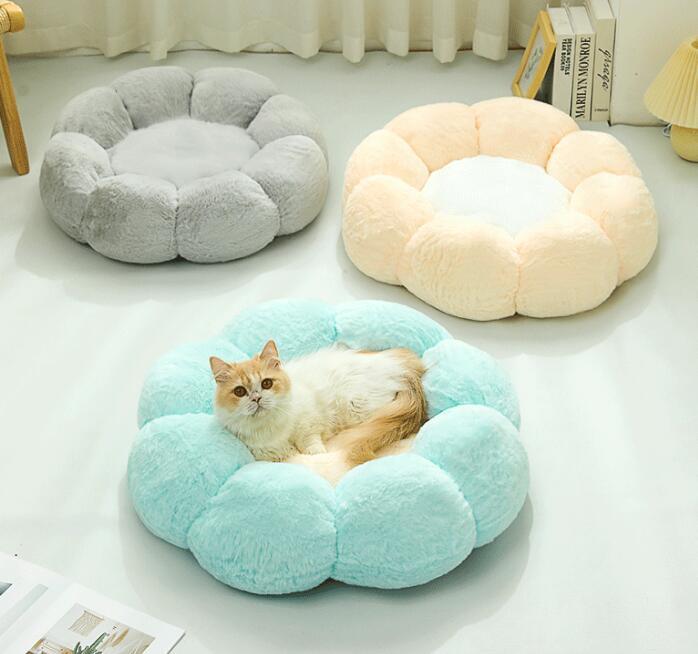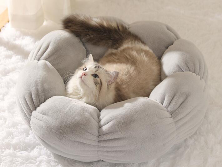 新作猫犬 ベッドペットベッド ふわふわ暖か もこもこ キャット ペット用品クッション マット 丸ドーナツ 可愛い 秋冬 グレー Lサイズ