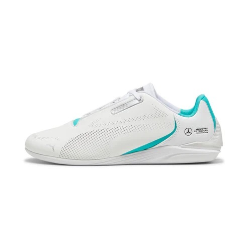 すっきりと洗練されたシルエット、メルセデスAMGペトロナスのブランディングロゴが目を引く一足。