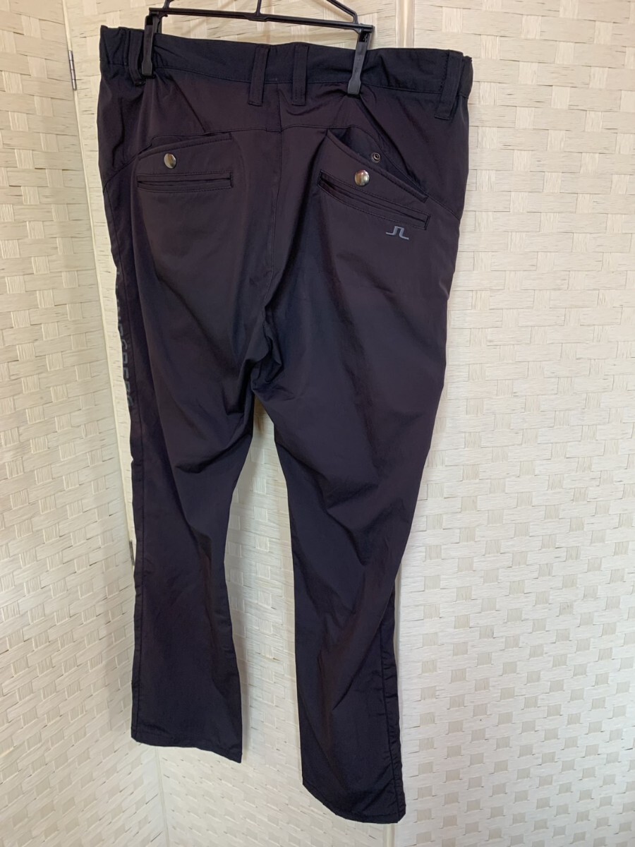 J.LINDEBERG メンズ ゴルフウェア ナイロンパンツ 32インチ ウエスト82cm ブラック サイドロゴ 股下75cm used