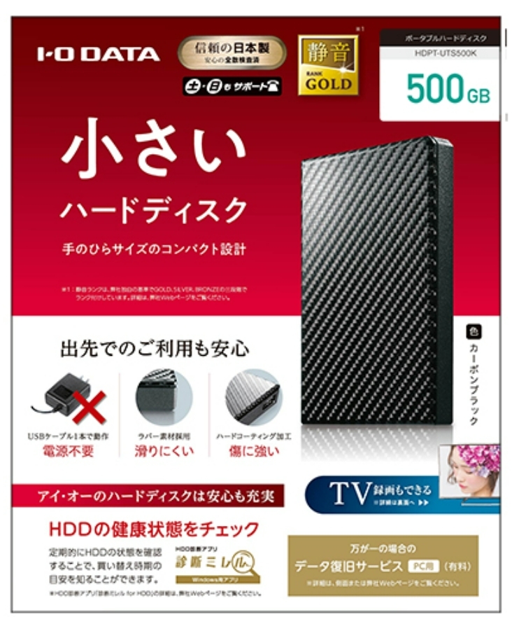 新品 バルク I-O DATA HDPT-UTS500K 500GB ポータブル ハードドライブ 外付け カーボンブラック 日本製