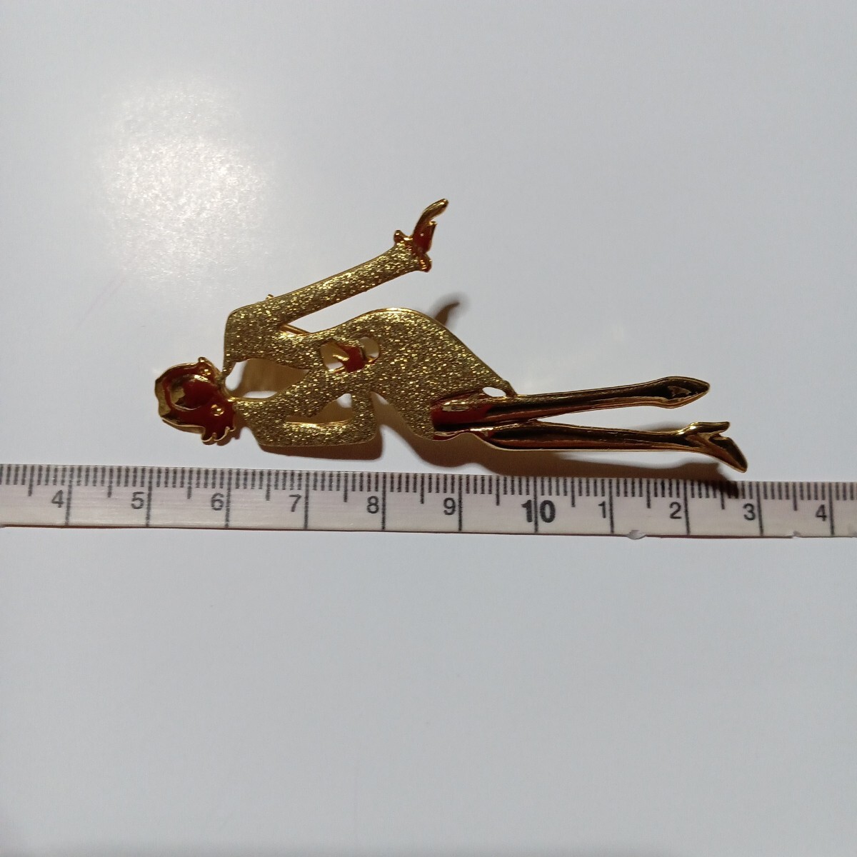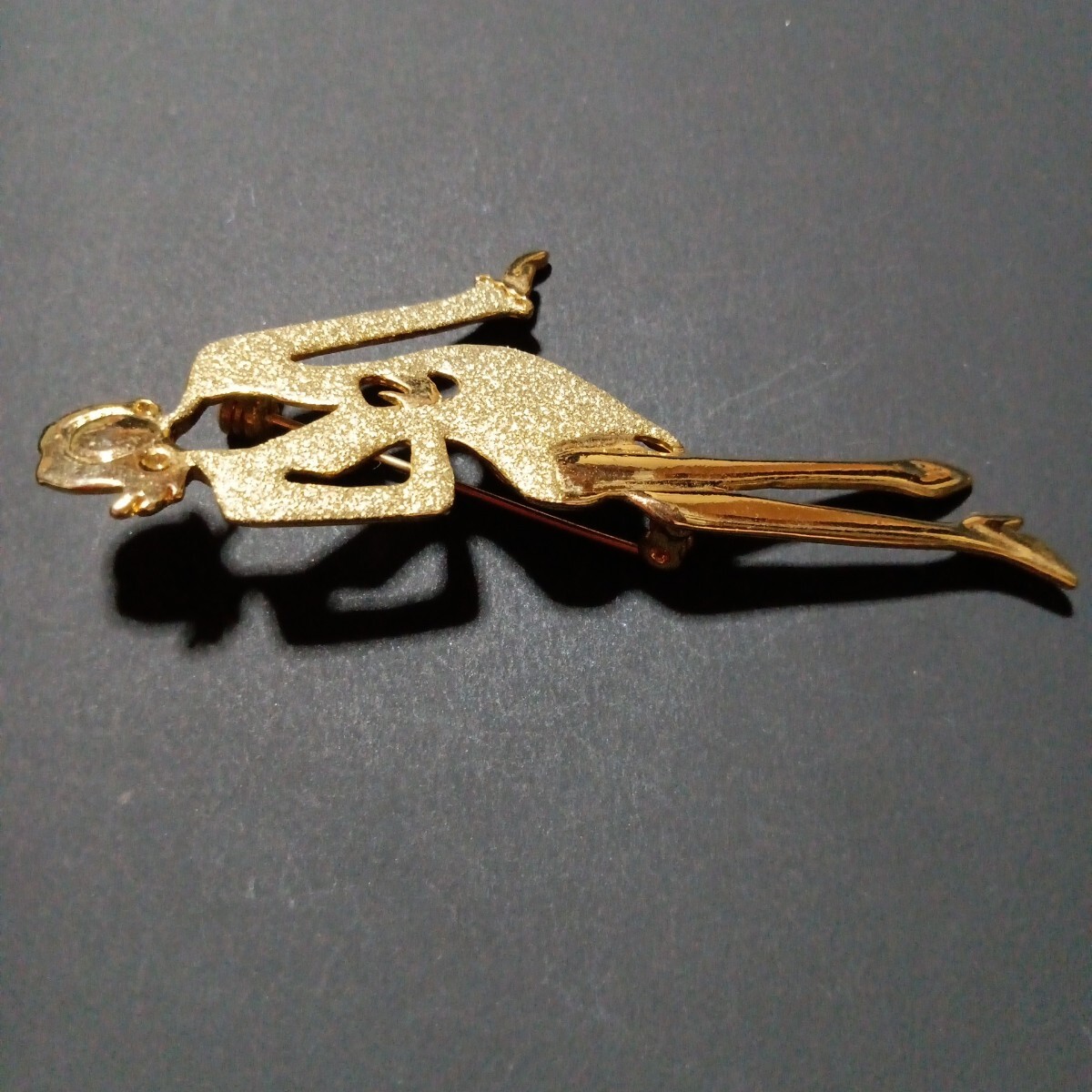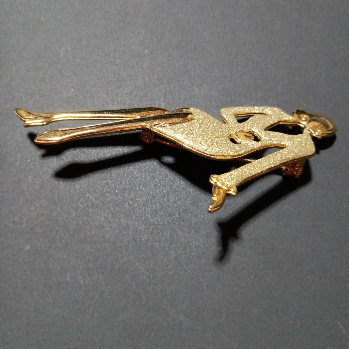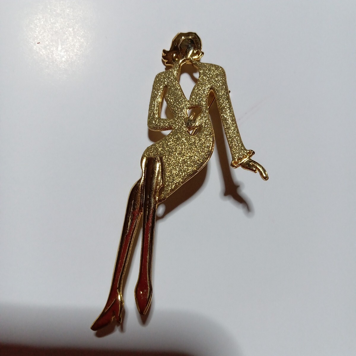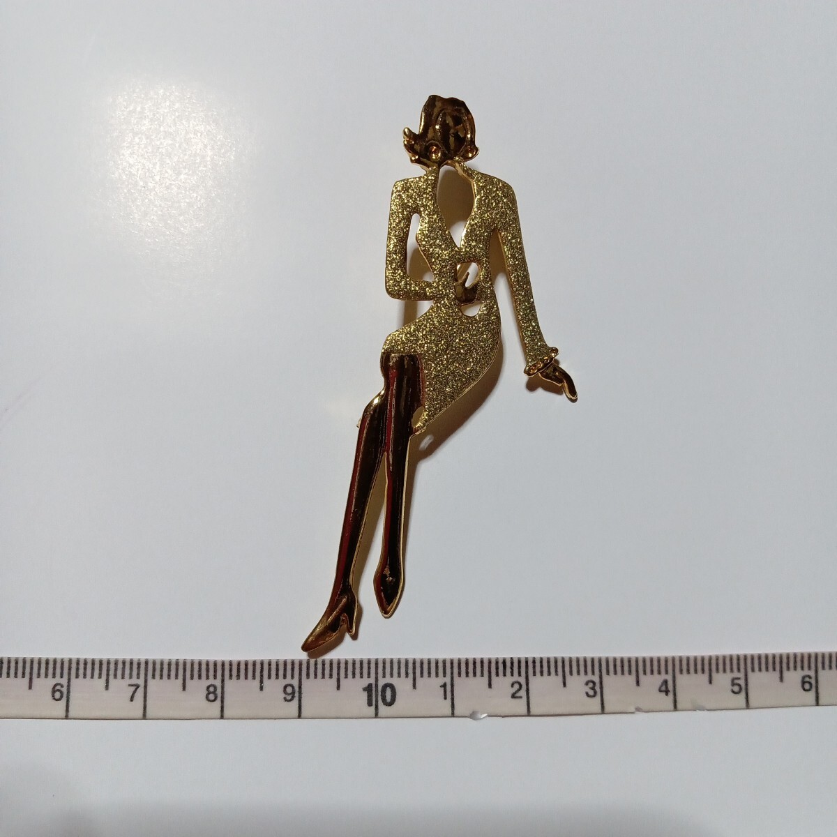 おしゃれなゴールドのスーツに身を包んだ女性モチーフの素敵なヴィンテージブローチです。スタイリッシュでファッションセンスの良さを感じるような都会的な雰囲気を感じます。さほど重量感は感じませんので着け易いかと思います。カジュアルにもフォーマルにもお使い頂けるデザインかと思います。縦長サイズで目を惹きますので、お洋服の他、バッグや帽子に付けて頂いたり、インテリアとして飾って頂くのも面白いかと思います。大切な方へのプレゼントにも。